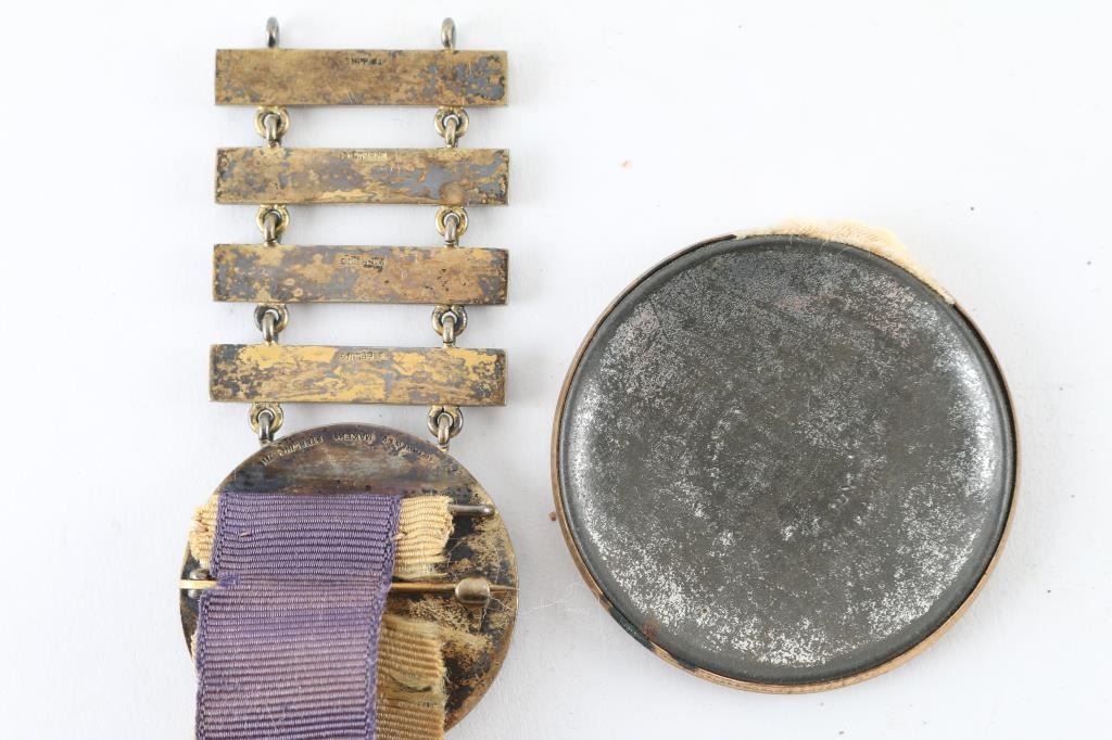 Owned by "Pierre Lorillard Jr" born March 10 1882 Manhattan, New York County, The Lorillard family is known for one of top Tobaccos company at the time that started in 1760. Pierre was a nationally known sportsman also served in WW1 as major under commandment of John J Pershing who's highly decorated, who states Pierre was a great horseman in the service. Which inspired him to create the army remount service for the British army shortly before the war started. He secured well bred horses from sportsman friends to use for improving the breed for the army. Later he was commissioned a lieutenant colonel. He also was a classmate of president Roosevelt at Harvard in 1904 an was in numerous sports an social clubs together. He was not married. The badge was custom made an marked by the "Whitehead an Hoag badge company picturing a indian women with unknown decent of the family but beautifully made an framed in engraved copper that use to be attached to the bottom of the badge. Good to very good condition with signs of age