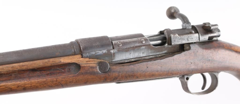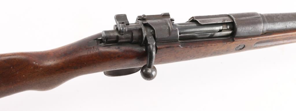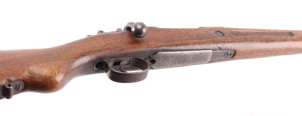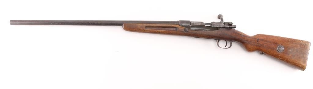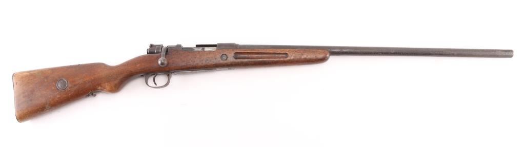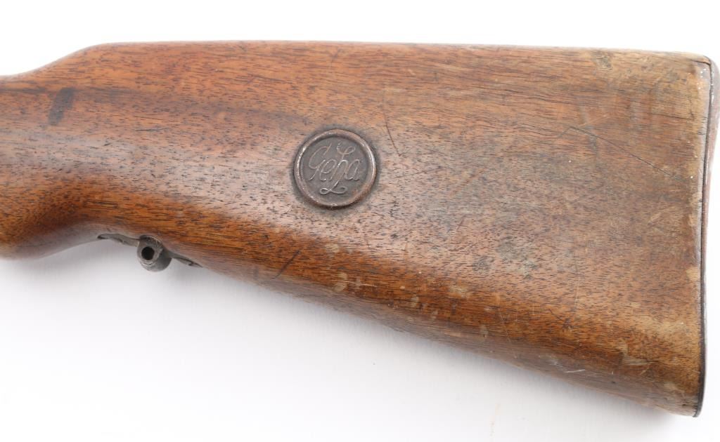 Blued Mauser style bolt-action rifle converted to a shotgun and stamped "Germany" for the export market with a 25-1/2" barrel, bead sight missing, wood stock. Geha medallions on both sides of buttstock, integral one rd magazine. Blue metal finish is covered with patches of surface rust, may improve with cleaning Bore is bright/good. Action works well. Wood has a few dents and dings. All matching serial numbers. NRA Condition-Fair. C&R Firearm.