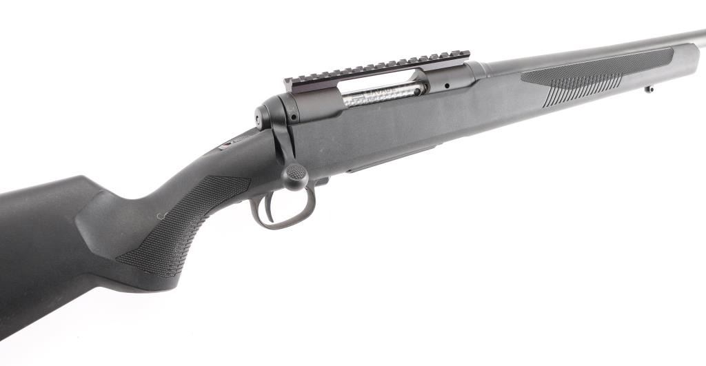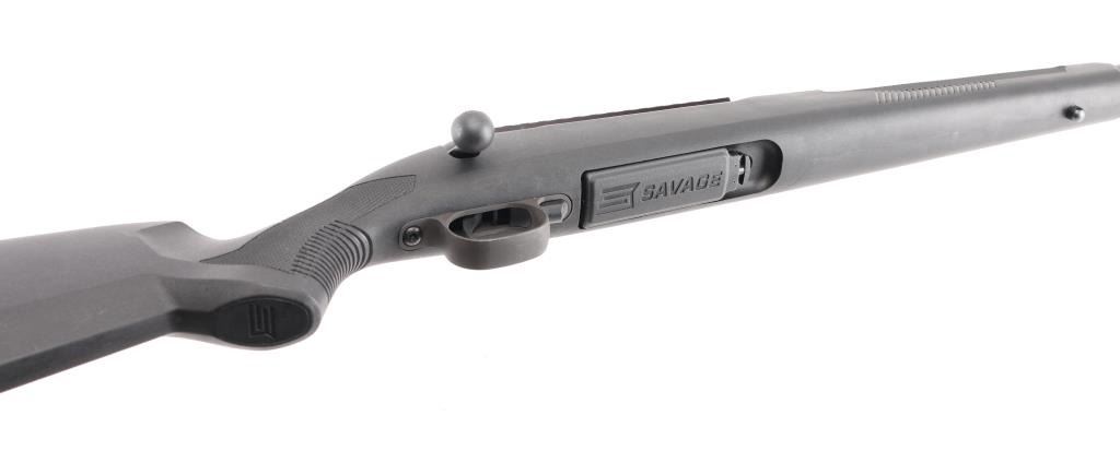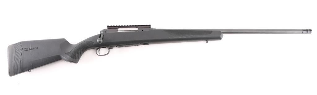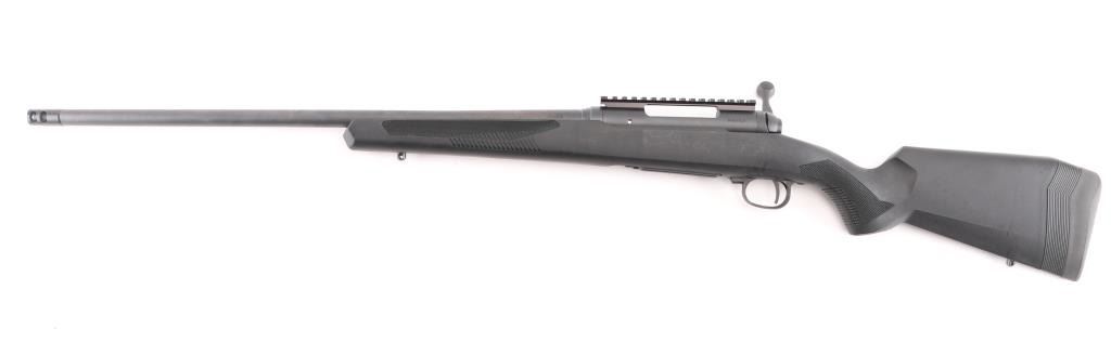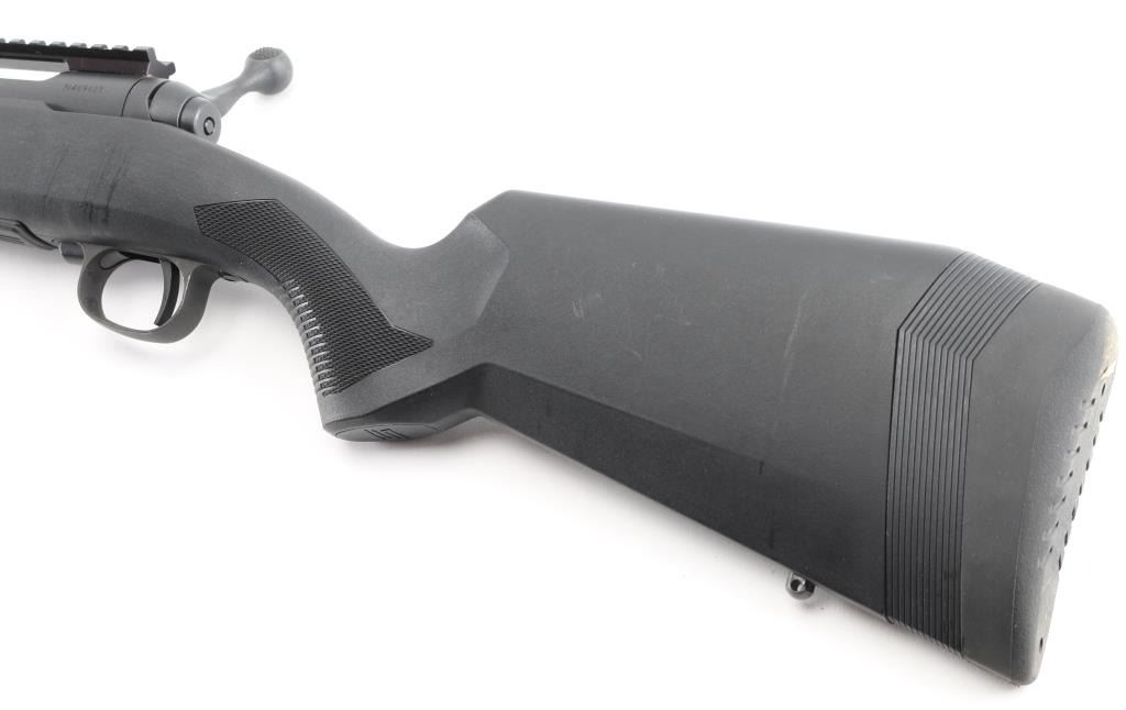Bolt action rifle chambered in 6.5 PRC. 24" barrel with muzzle brake, black carbon steel receiver with Picatinny scope mount, black synthetic stock with sling studs, manual safety, no sights. Bore and action are excellent, barrel has a couple of scratched on the top finish. Comes with (1) 2 round detachable magazine. Condition is NRA Excellent. Modern Firearm.