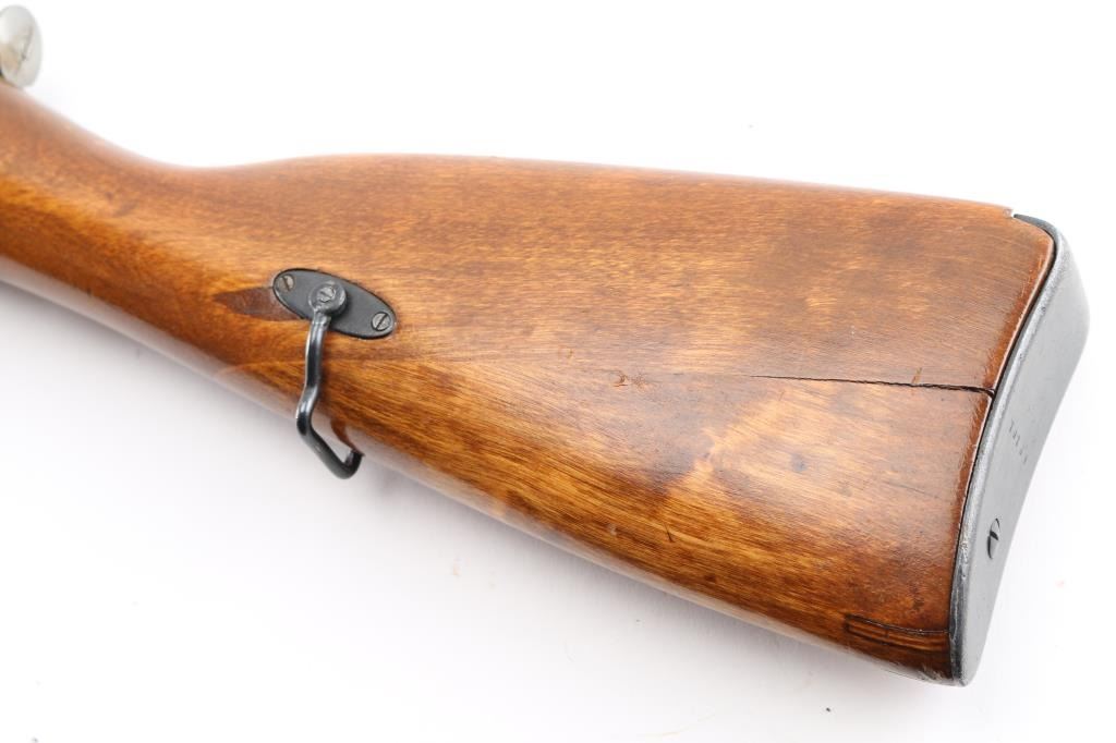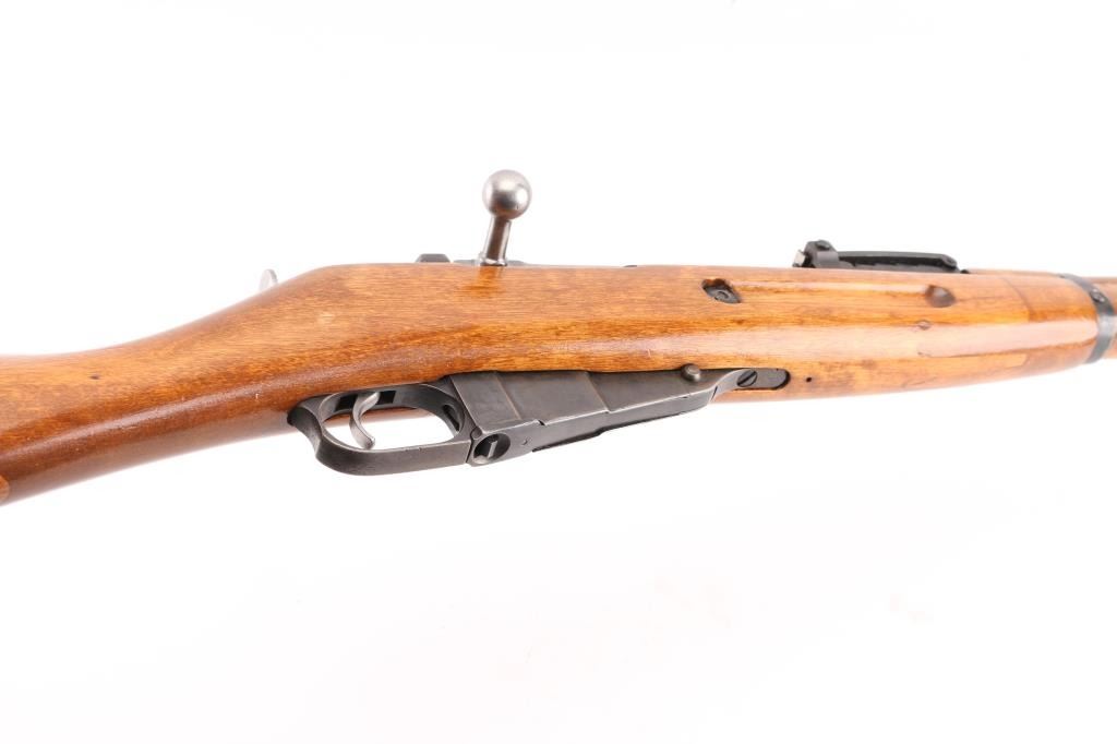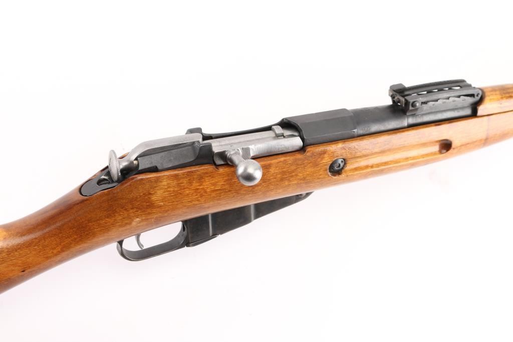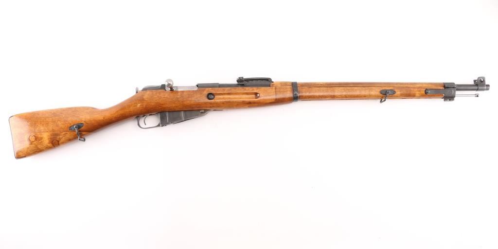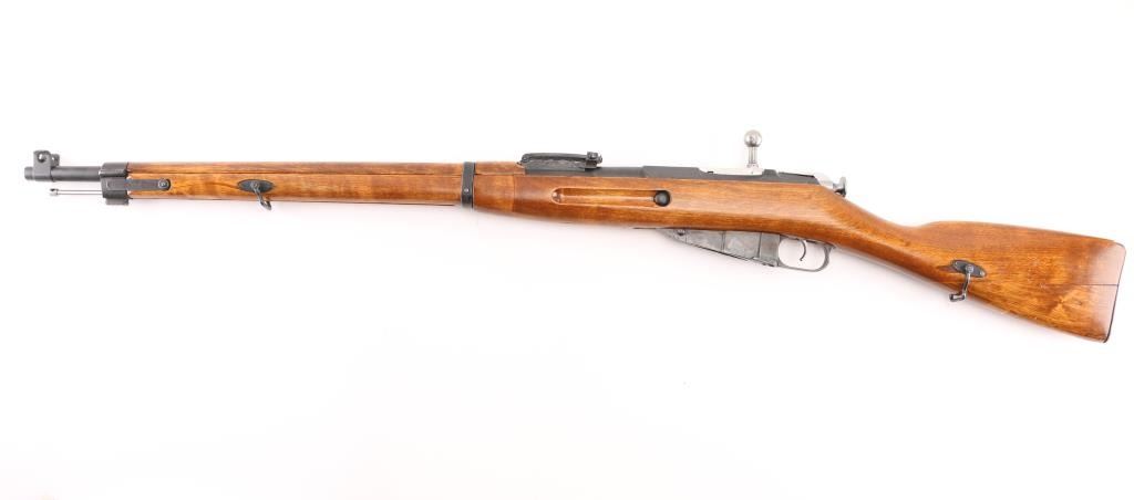 Finnish modified Mosin Nagant, dated 1931, imported by CAI, St Albans VT. Features hex receiver, 27" barrel, protected blade front & tangent rear sights, cleaning rod, bayonet lug, sling swivels, manual safety. Bore is good or better, lightly frosted, bright with strong rifling. Retains 95% arsenal reblue, showing edge losses, fading on triggerguard. Bright metal bolt is very good. Stock is sanded, varnish applied, overall good fit to metal, shows plug repairs from previous arsenal rework. Markings are sharp. Condition is NRA Very Good (refinished) *** C&R Firearm ****