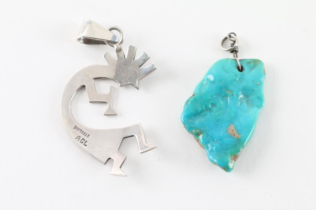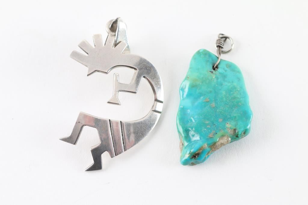 (1) Zuni sterling kokopelli pendant (1) Turquoise stone pendant