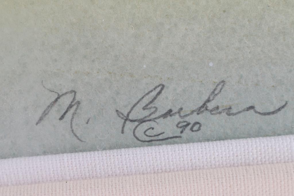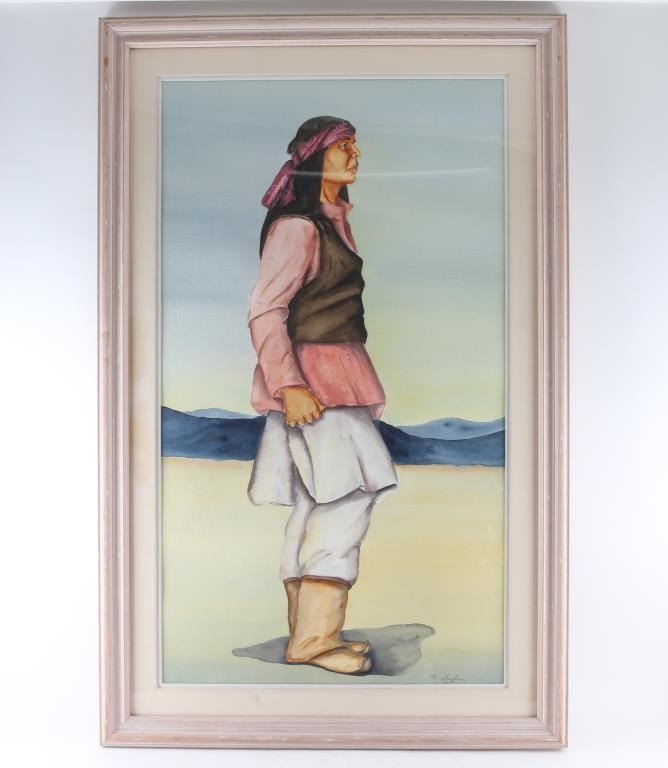 by N. Barbar 1990 depicting Indian. 39"x 22" in white wash frame.