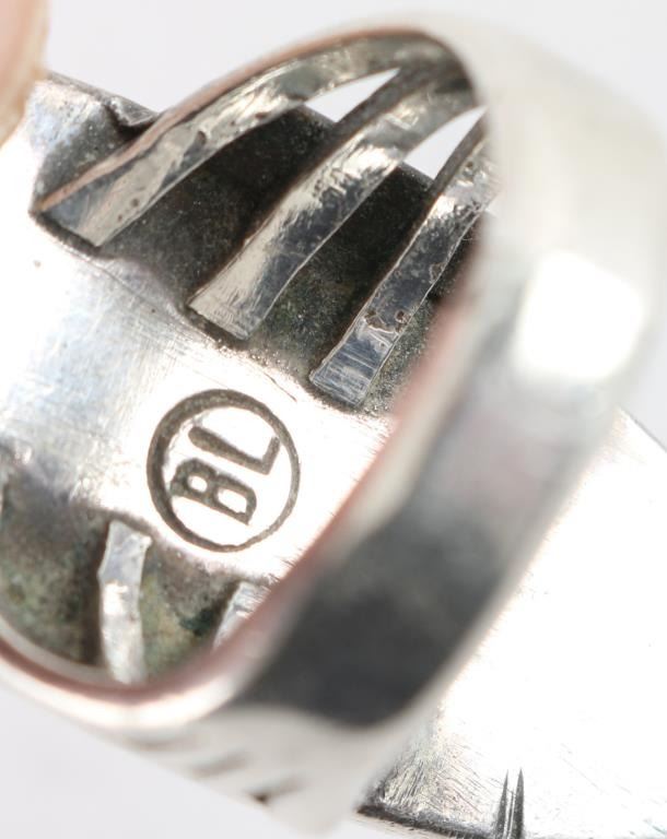 with center oval stone set in sterling silver maker marked "BL" size 9.