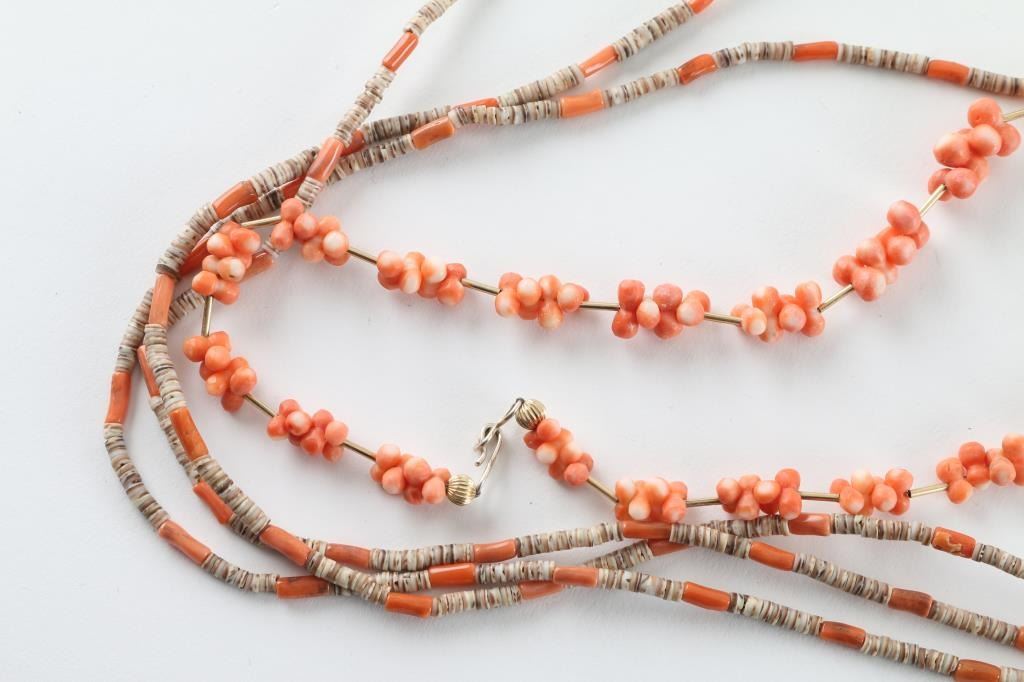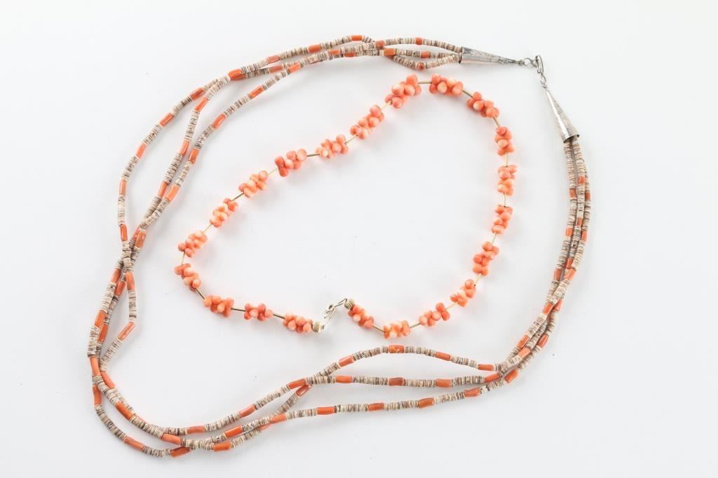 (1) Heishi and Coral 3 Strand Necklace (1)Single Strand Bubble Coral Necklace