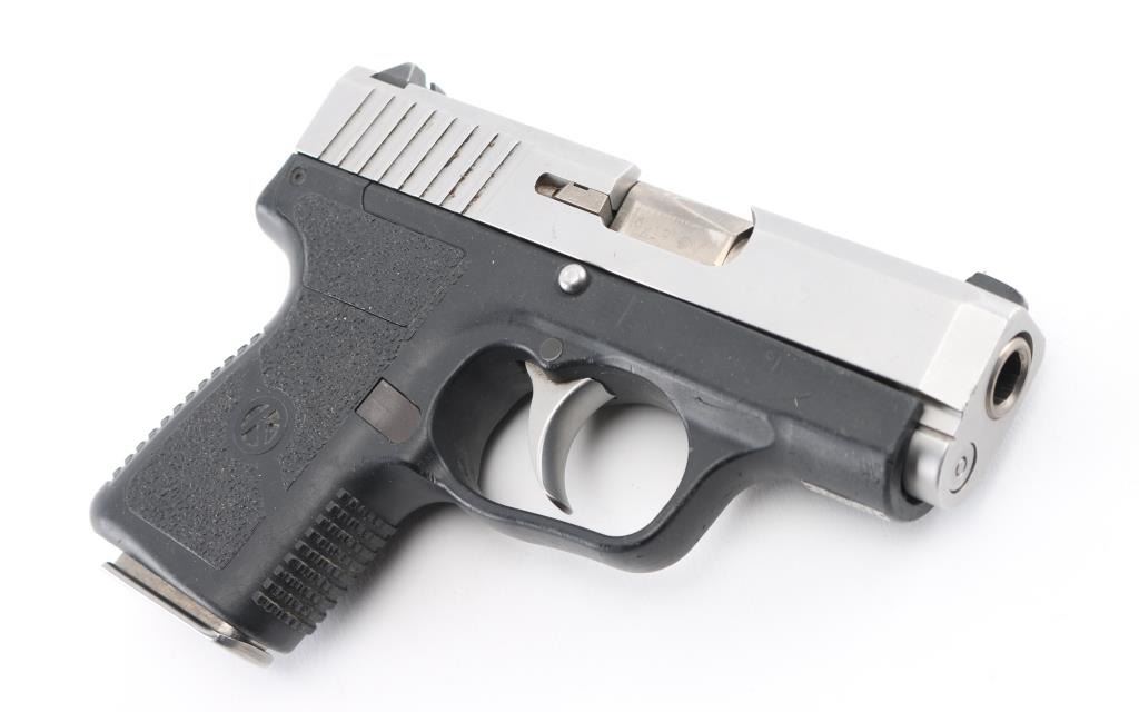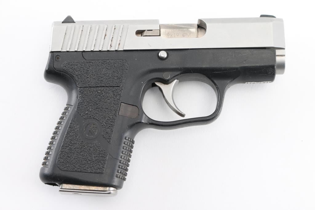 Semi-automatic. Compact, lightweight pistol, for concealed carry. 14 ozs, 3" barrel. 5.42 overall. Matte-stainless steel slide with fixed sights. Black polymer frame, with textured polymer grips. Slide action is a little hard, needs oil. Bore appears excellent/bright. Someone has added pink to the sights for better visibility. Frame, and slide has some scratches/scuffs, but nothing serious. Comes with one 6-rd magazine, & one extended 8-rd magazine. (2) total NRA Condition-Very Good. Moidern Firearm.