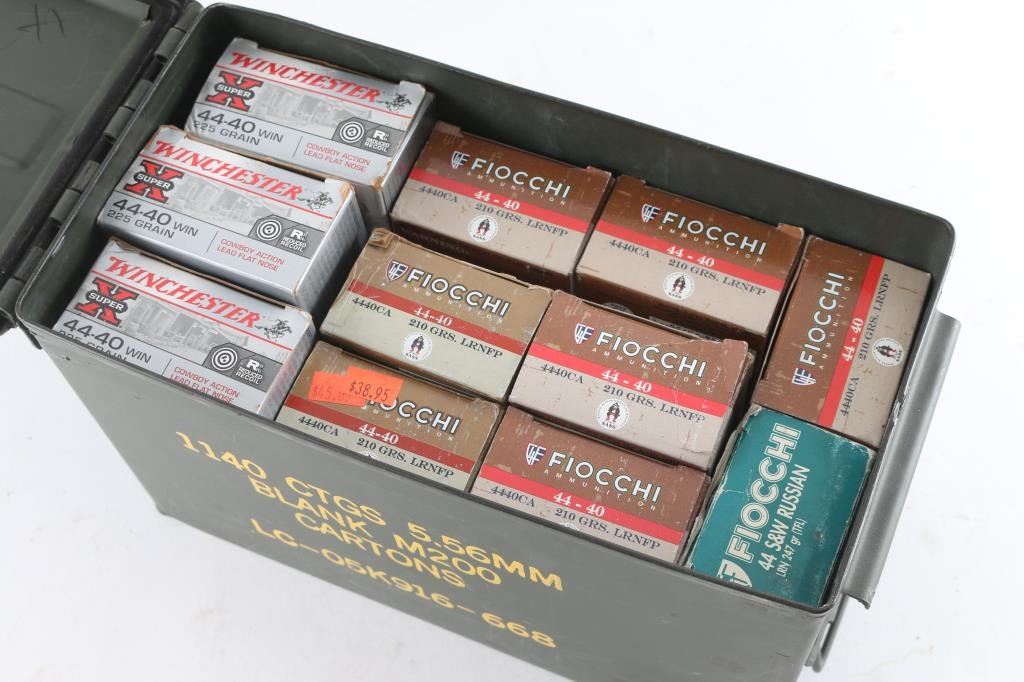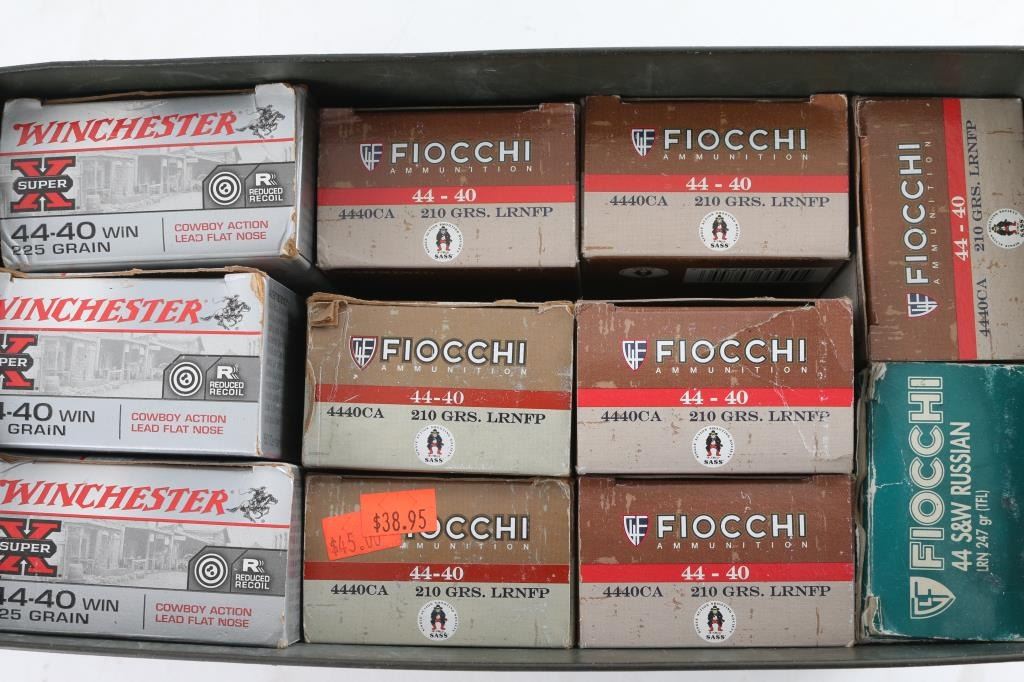 Approx. 500 rounds of new 44-40 ammo and approx. 50 rounds of new 44 S&W Russian ammo, Winchester and Fiocchi in factory boxes.