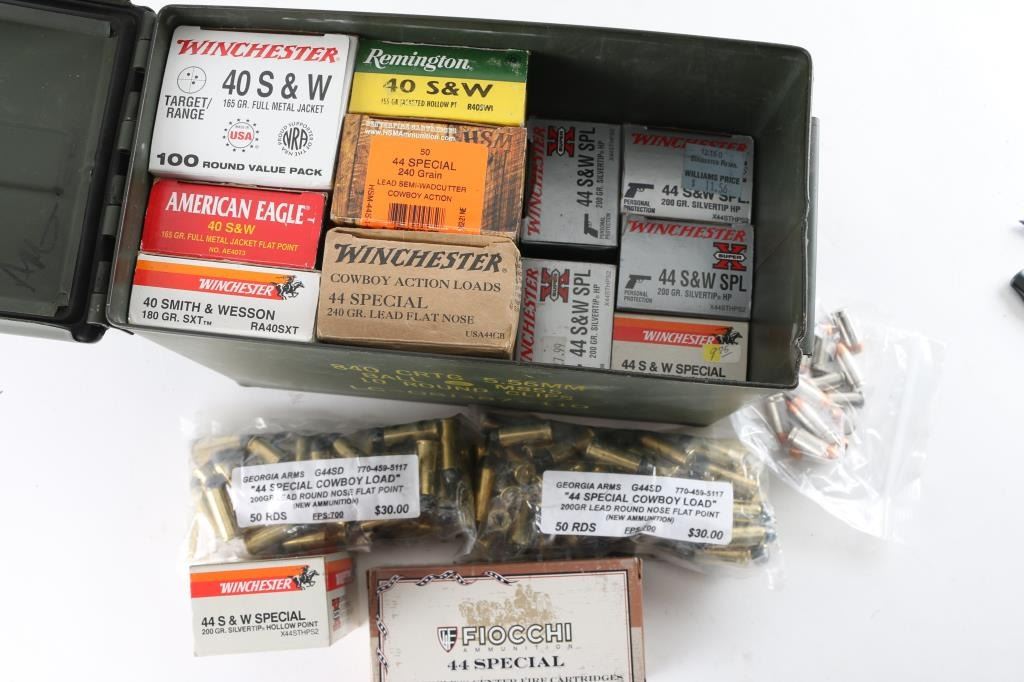 Approx. 115 rounds of 40 Smith & Wesson and approx. 380 rounds of 44 Special. All new in factory boxes and bags.