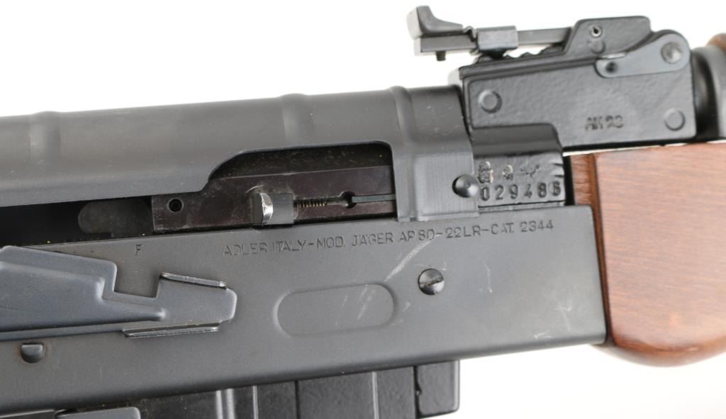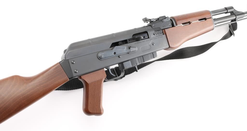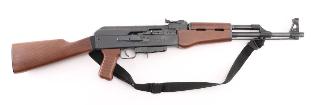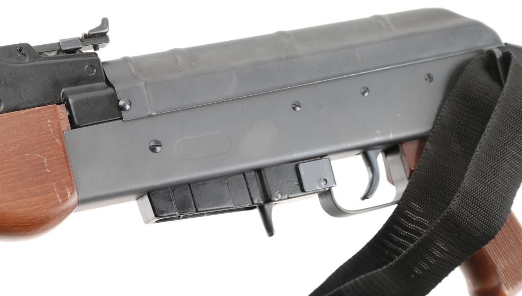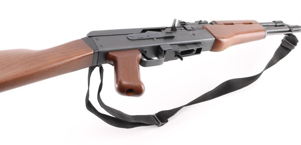 SN:029486, Semi-auto Italian made copy of an AK47 rifle chambered in .22LR. Blued finish, wood stock, vertical pistol grip, forearm and hand guard, 18" barrel. Comes with black nylon sling. No Magazine. Condition is NRA Excellent. Modern Firearm.