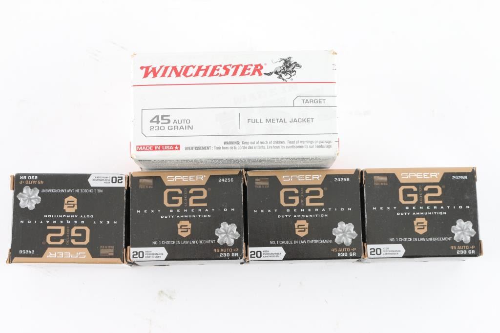 includes 100 rd Winchester FMJ, four 20 rd boxes Speer G2 Next Generation Duty Ammo. Total 180 rds.