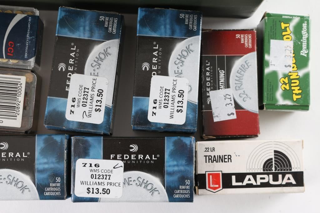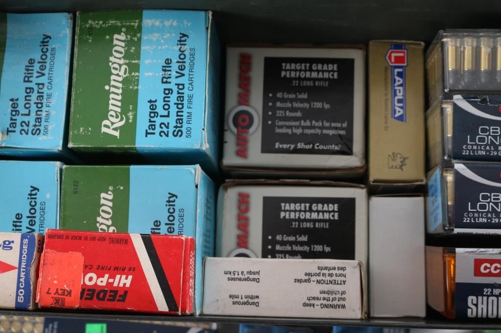 Approx. 3975 rounds of .22 LR ammunition, from various makers and bullet types, new in factory boxes.