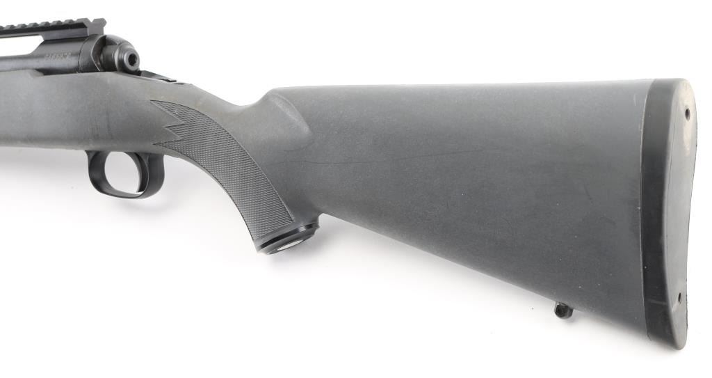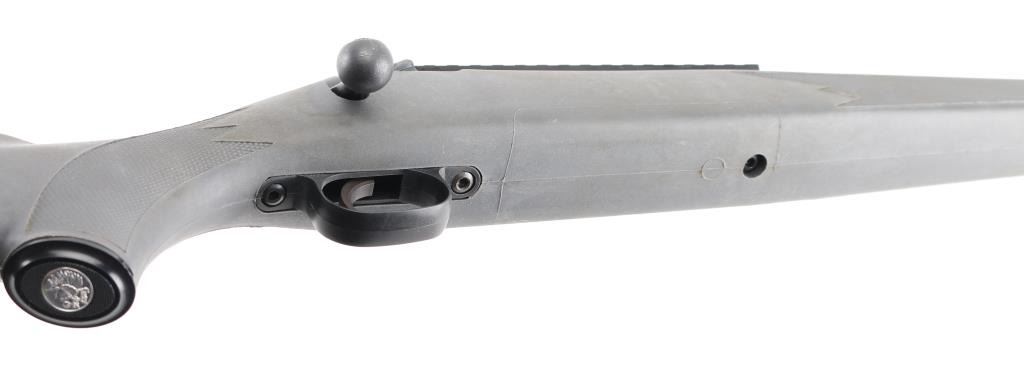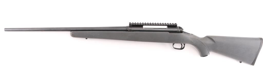 Blued finish, tapered 22" barrel chambered in .25-06, no sights, blind internal box magazine, manual safety, plastic trigger guard, swivel studs, and checkered grey synthetic pistol grip shoulder stock with rubber recoil pad and swivel studs. Bore is excellent. NRA Condition is Excellent. Modern firearm.