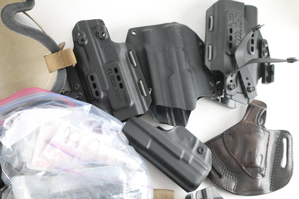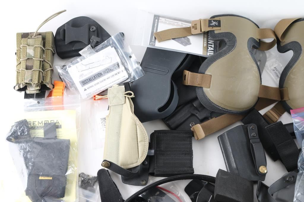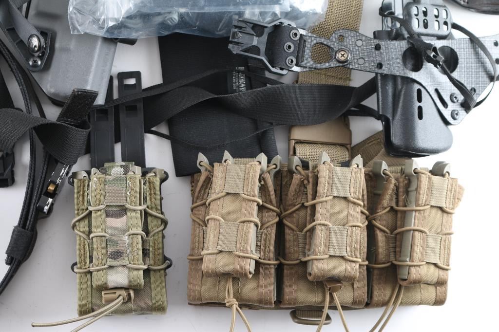 approx 13 pounds of gear. Many newer premium holsters, nylon tactical type mag pouches, backpack, other items.