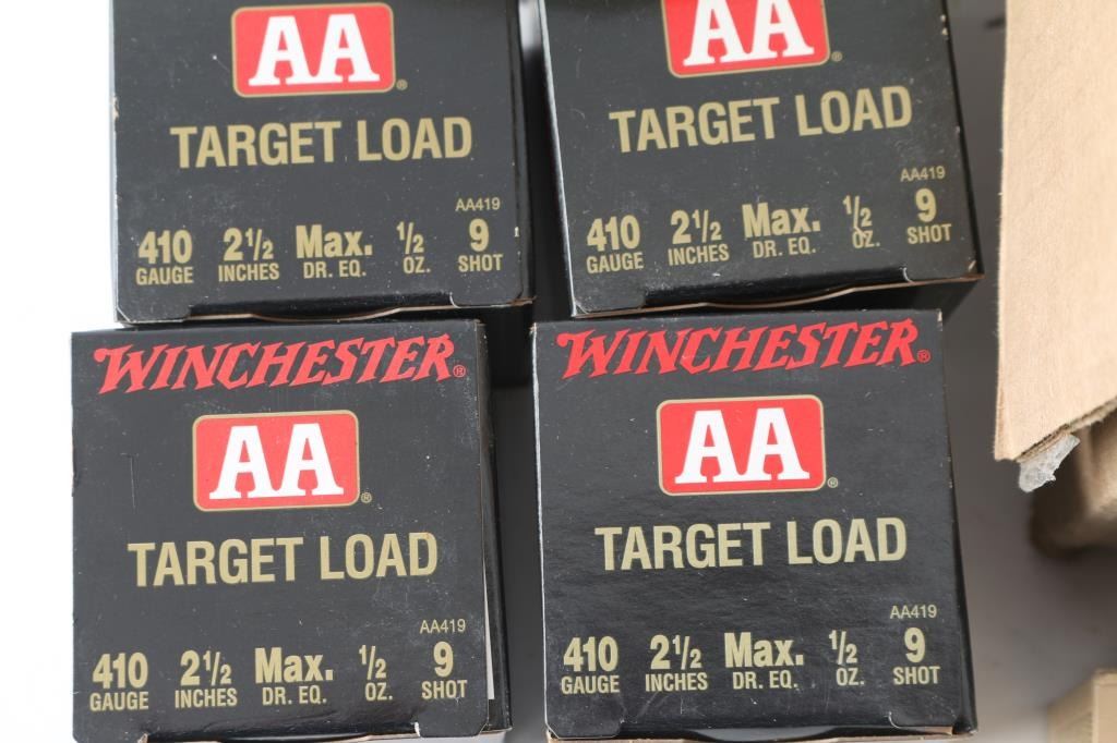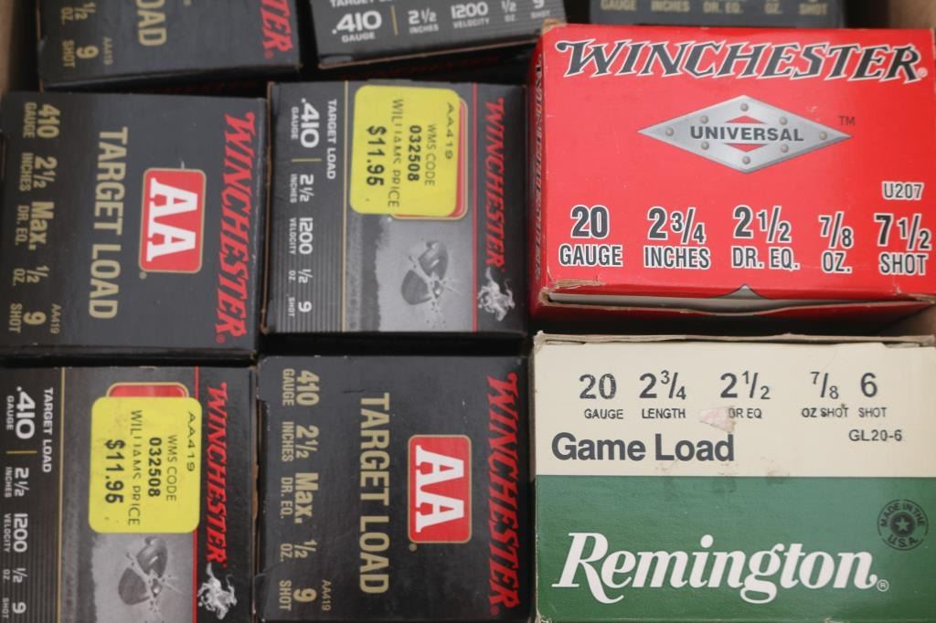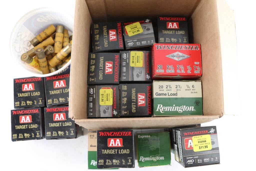 Approx. 350 rounds of .410 shells and approx. 50 rounds of 20 gauge shells, new in factory boxes.