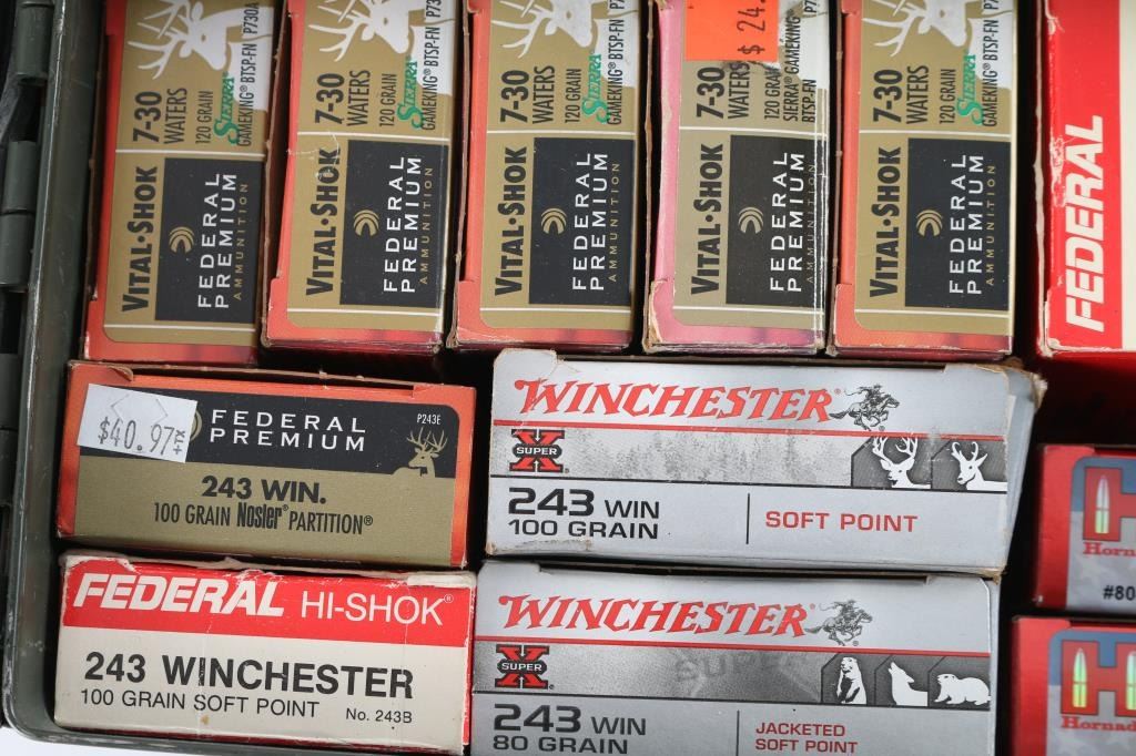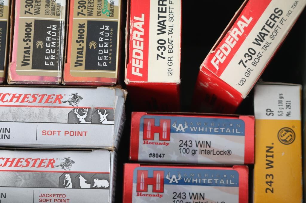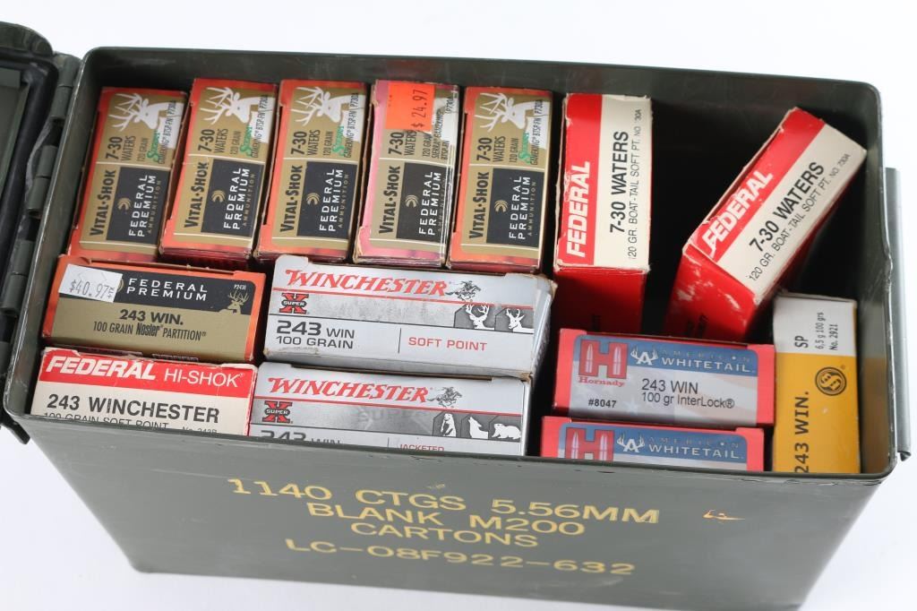 Approx. 155 rounds of .243 Win. ammo and approx. 140 rounds of 7-30 Waters. All new various brands in factory boxes.