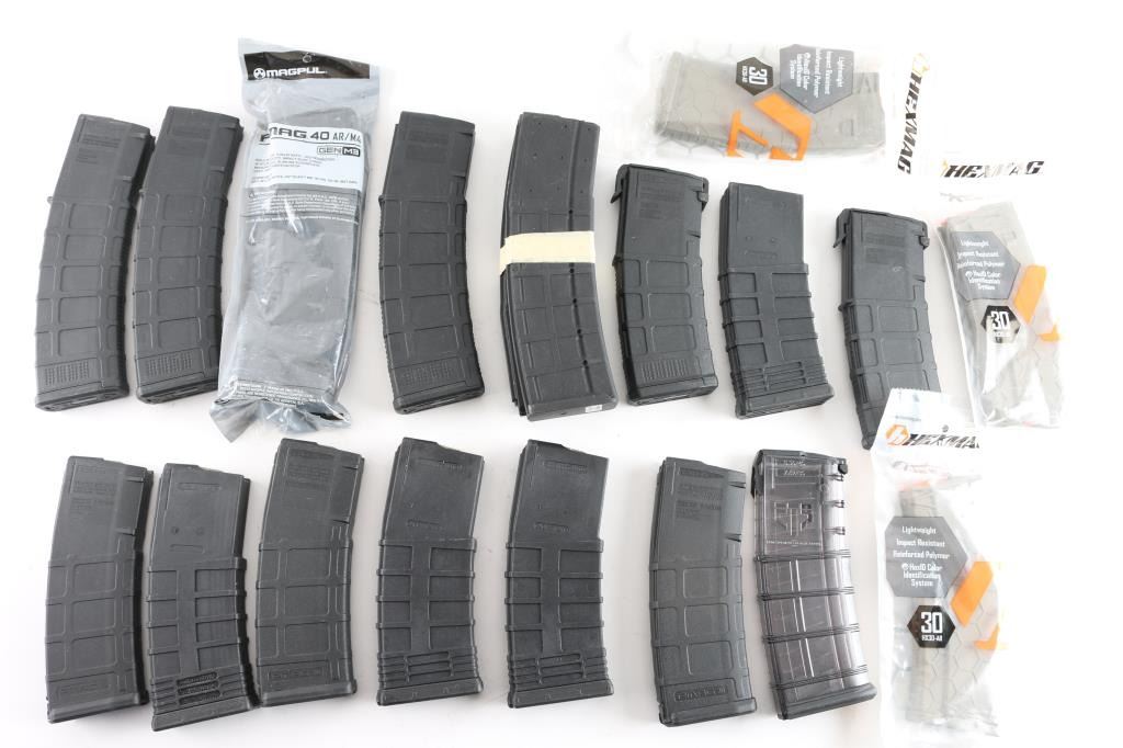 all in very good condition. 19 mags total. Include M2 & M3 PMAG30, four PMAG 40 rd, three Hexmag (tan, still in wrap), one Elite Tactical, two Bulgarian 40 rd.