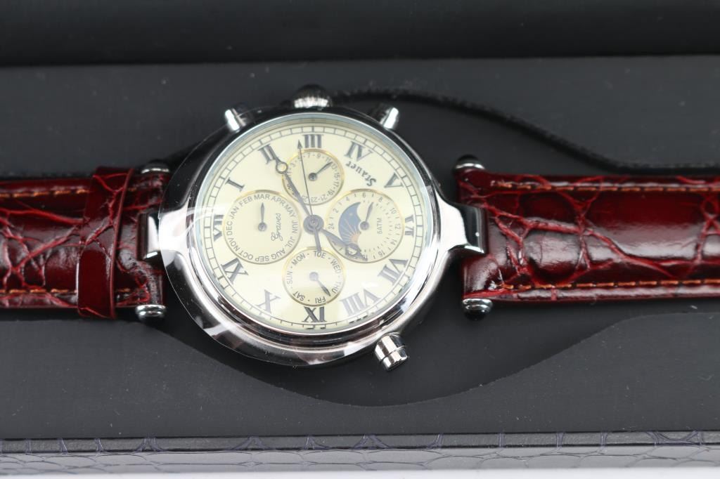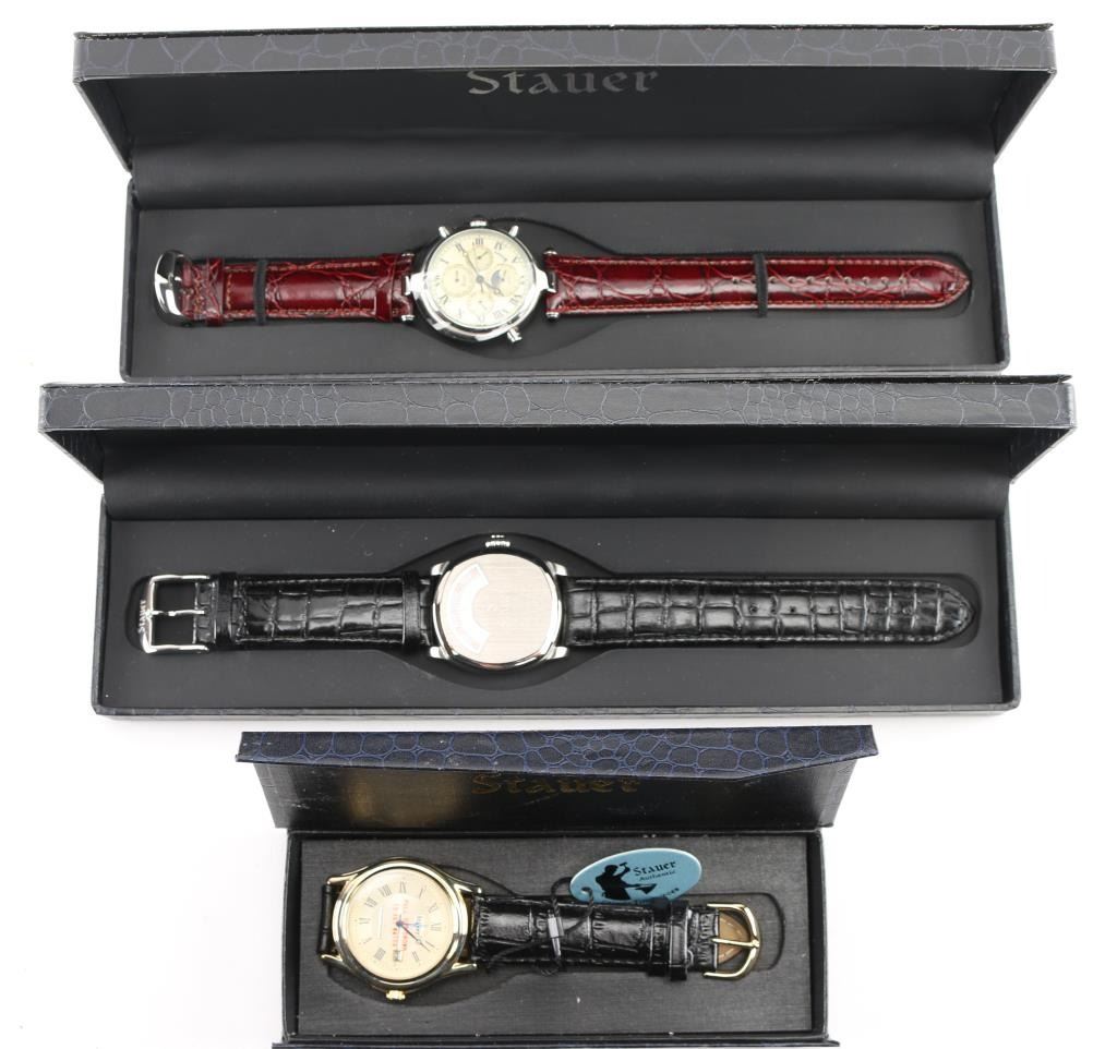 all like new in original boxes: 1) "Graves '33" - four interior complications, 7 hands, graphically depicts the Sun & Moon 2) "1930 Dashtronic" - machine art aesthetic, retro dashboard look 3) "Metropolitan" - classic men's dress watch