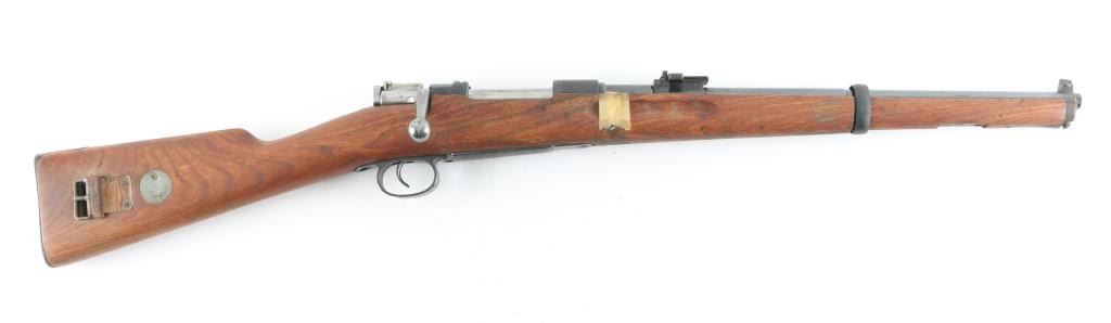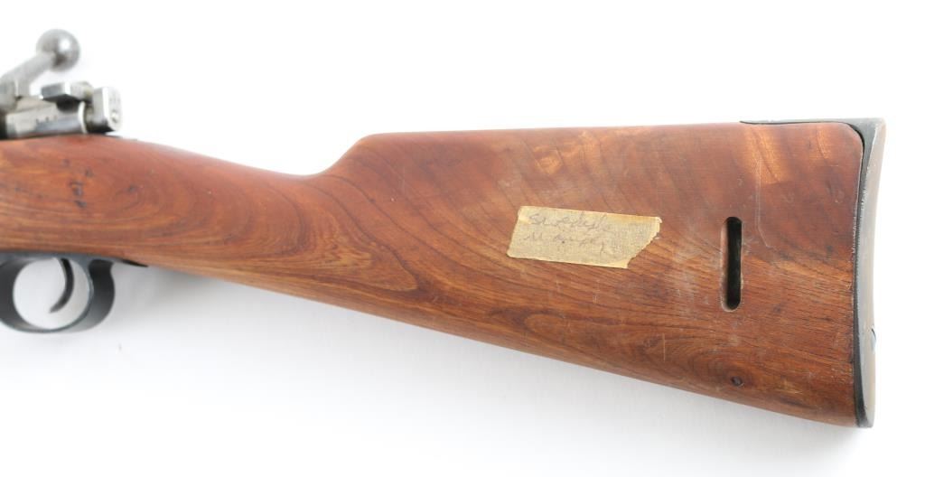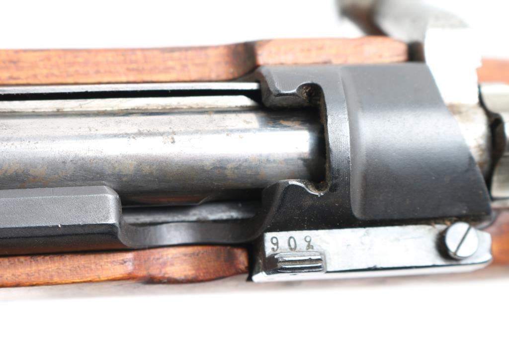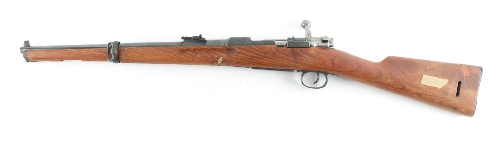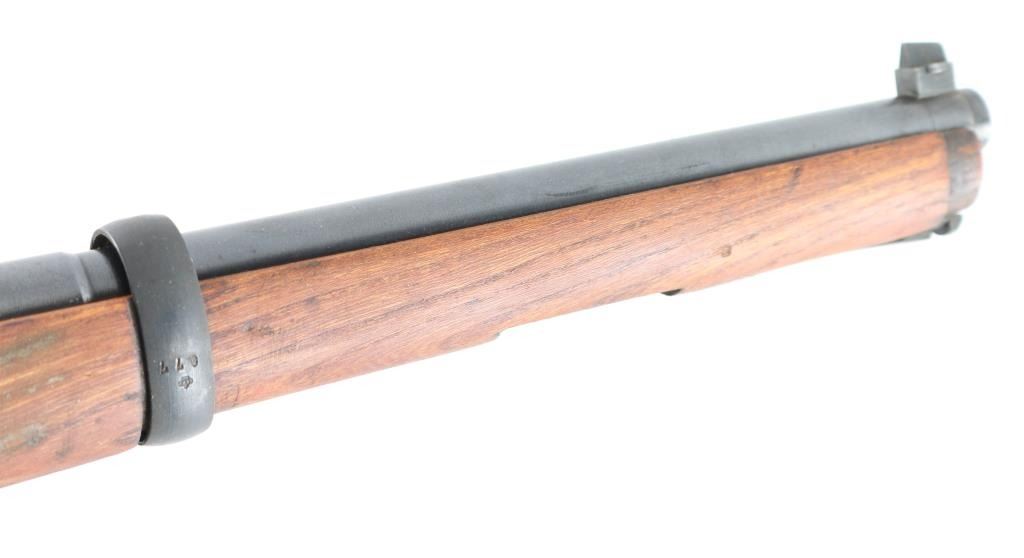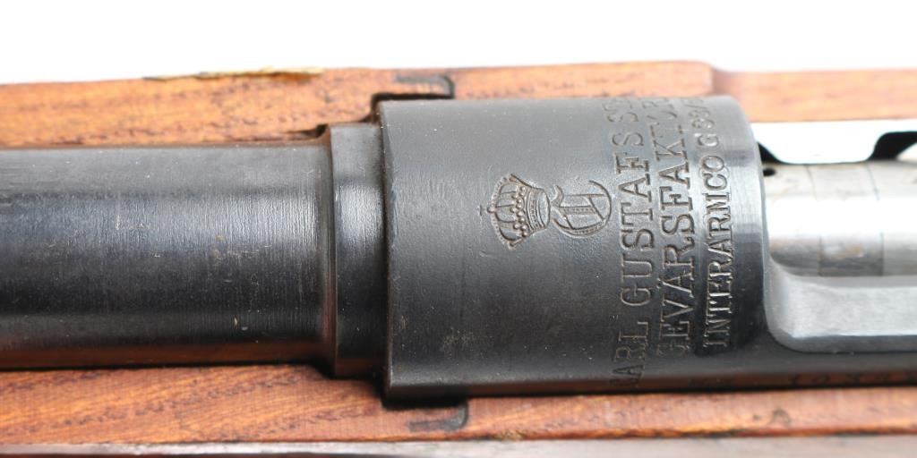 SN: 103827 For Parts or Repair only. Missing handguard, forward bands, maybe other parts. Swedish military carbine imported by Interarmco. Features 18" barrel, blued finish, bright metal bolt with turned down handle, blade front and flip-up ladder rear sights, manual safety. Bore is very good condition. Receiver has been scrubbed of some original markings, and importer marked. Retains 85% blued finish, some small areas of light patina. Bolt is bright. Appears to have original military sights, and bolt handle has the correct appearance for a carbine. Numbers do not match. Condition is NRA Very Good (missing parts) *** C&R Firearm ***