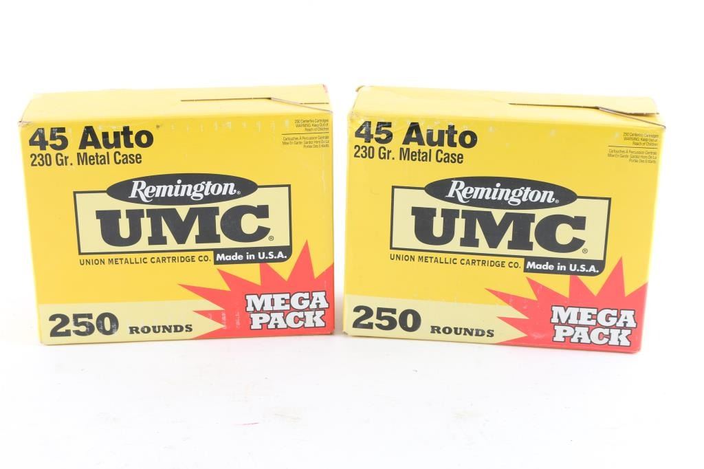 in two Remington UMC "Mega Pack" factory boxes holding 250 rds each, 230 grain MC