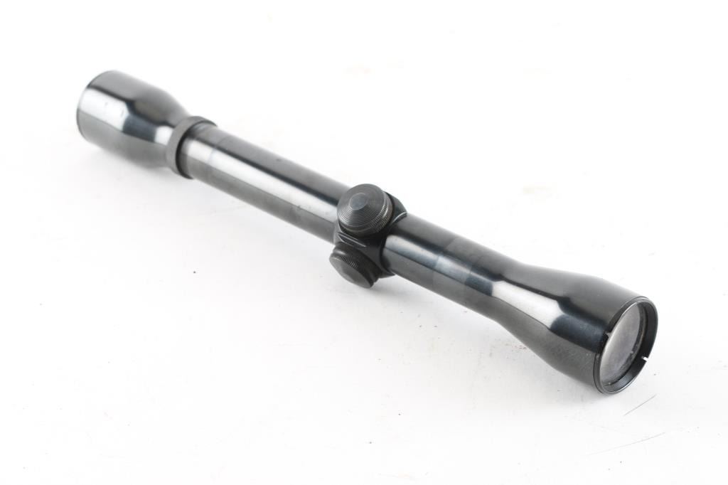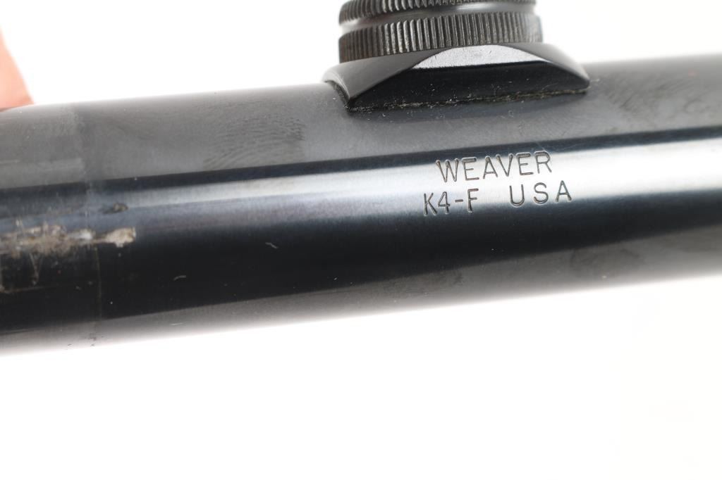 Vintage Weaver rifle scope model K4-F, 4X16. Clear lens and crisp cross hairs. Very good condition with some scuff marks and wear on on finish. Comes with cardboard.