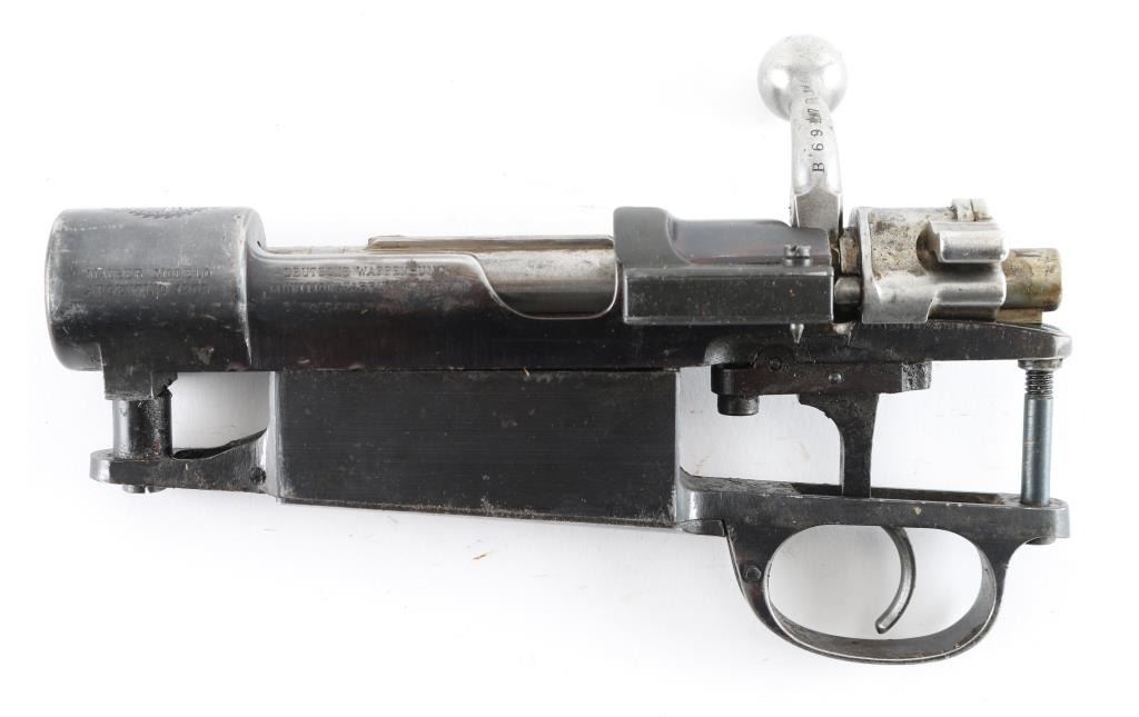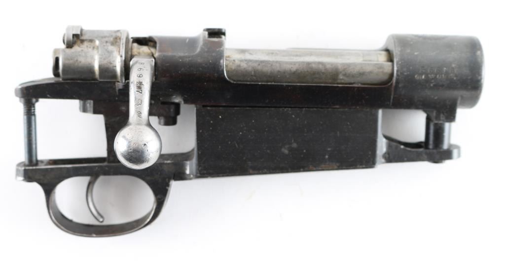 Large ring 1898 Mauser (action only) in overall good condition, mismatched, no barrel, no stock or other fittings. Action appears complete, with turned down bolt handle. Bare metal bolt, blued receiver & bottom metal with hinged floorplate. Some patina, very little pitting. Importer marked "CIA ST ALB VT" on right side of receiver ring. Condition is NRA Good++ (Action only) *** C&R Firearm ***