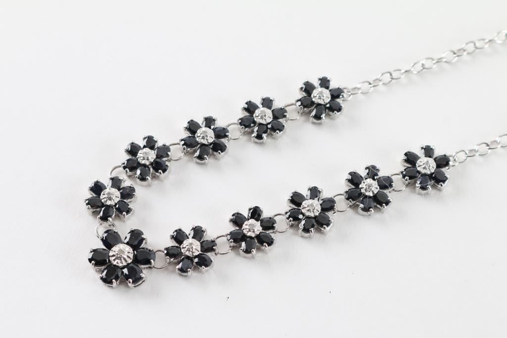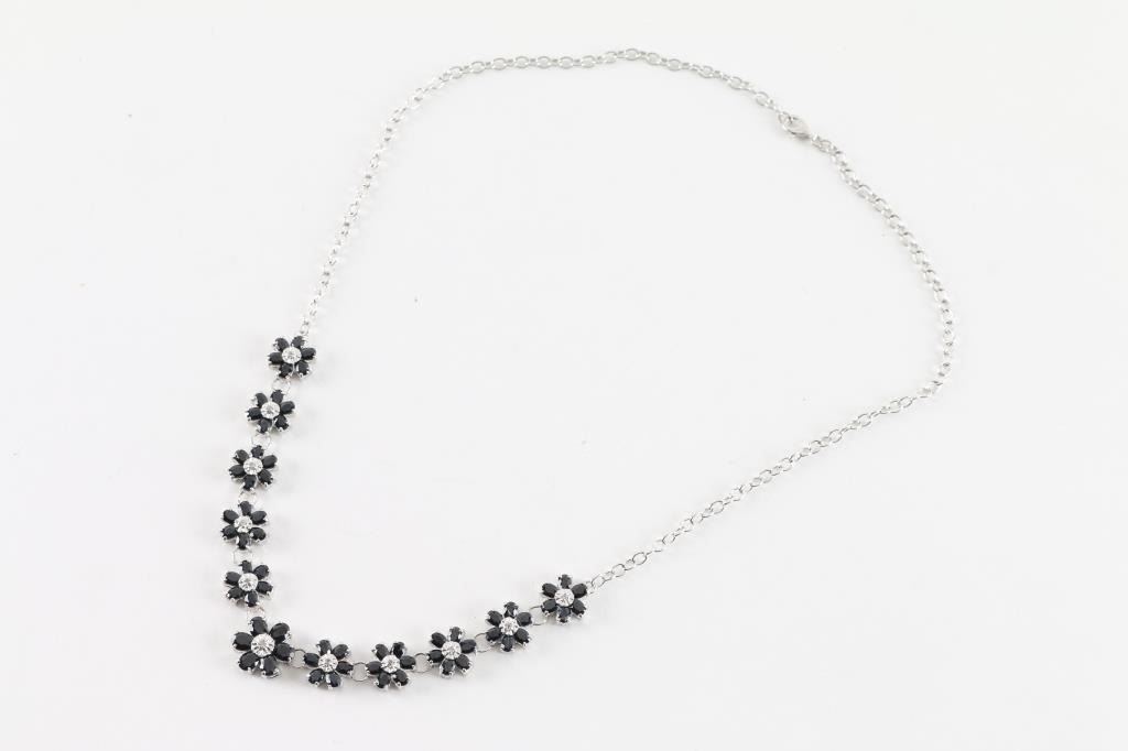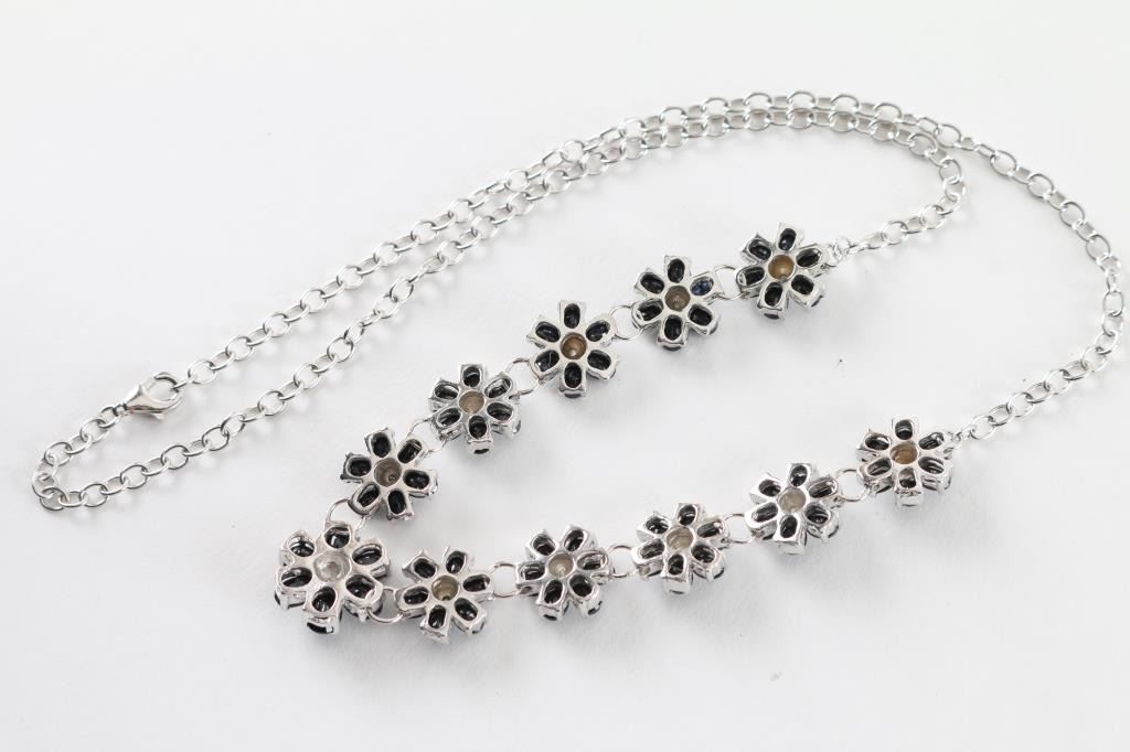 Lot 1652 Classy Sapphire & Diamond Floral Necklace