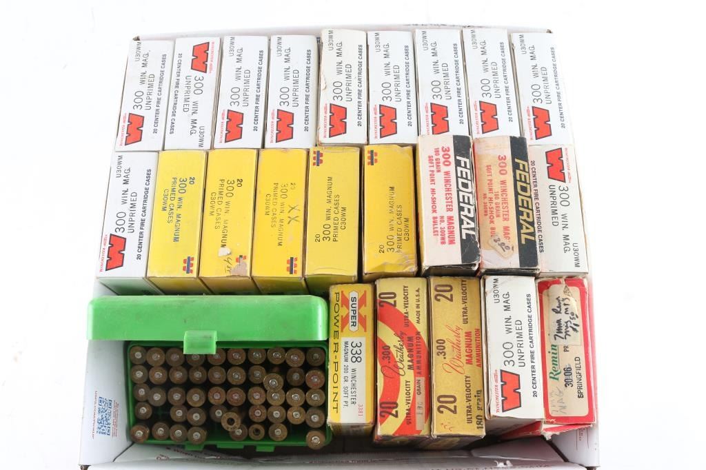 also some other calibers (338 Win Mag, 300 Wby Mag), most in factory boxes. Weighs over 19 pounds, 23 boxes.