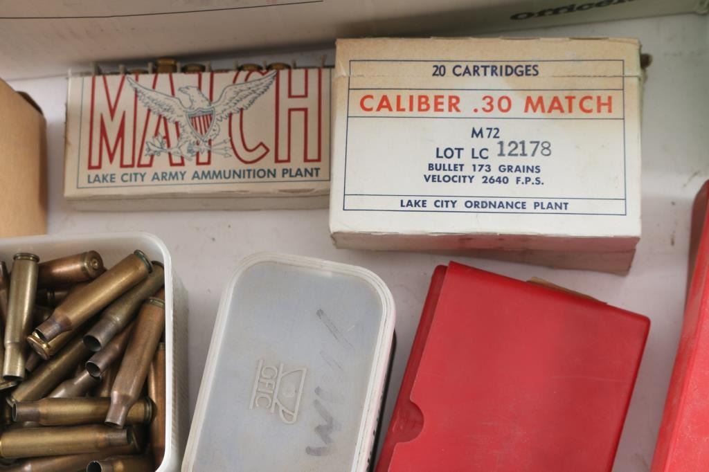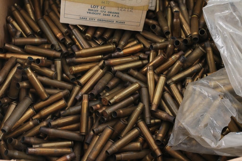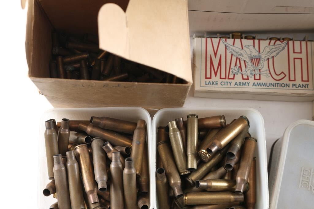 weighs 42 pounds. Mostly loose, some pieces are in factory boxes (approx 120 pieces LC Match once fired), some other calibers (22 Hornet, small amount of 7x57, others).