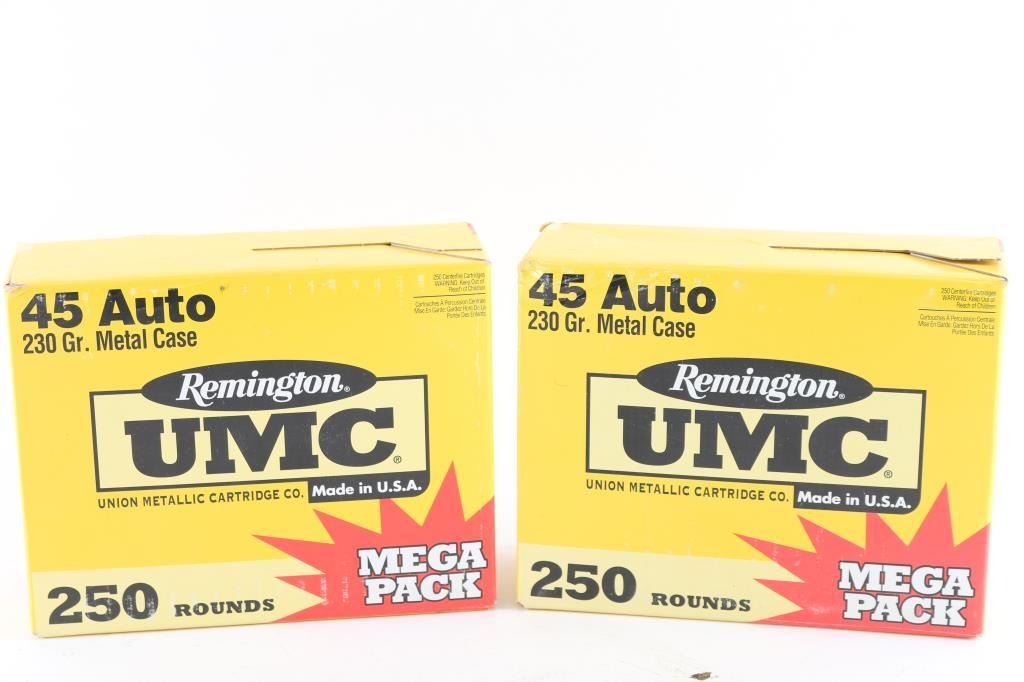 in two Remington UMC "Mega Pack" factory boxes holding 250 rds each, 230 grain MC