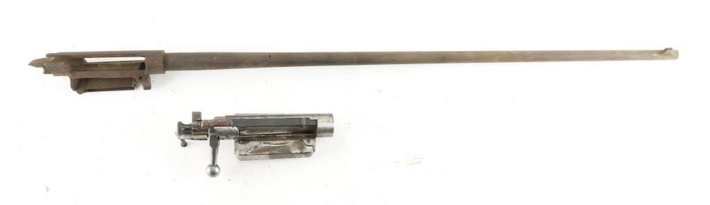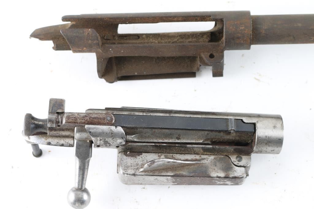 SN: 446362 (Action) & 268501 (Barreled Receiver). US Krag bolt action military rifle receivers for parts or repair. In fair to good condition, showing much bare metal and thin patina coverage throughout. Pitting on about half of the magazine cover. Appears mostly complete, missing the magazine spring, magazine cut off, several screws, and possibly other small parts. Has been drilled & tapped on right side of bridge for a receiver sight. Includes two rear action screws. Condition is NRA Good (Action Only) Second is a barreled Receiver Only, brown with patina and light rust, poor to fair bore, full length (30") rifle barrel with original front sight base. Condition is NRA Fair (Receiver Only) *** C&R Firearms ***