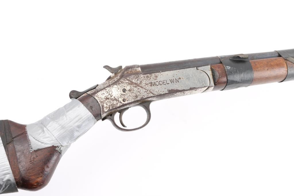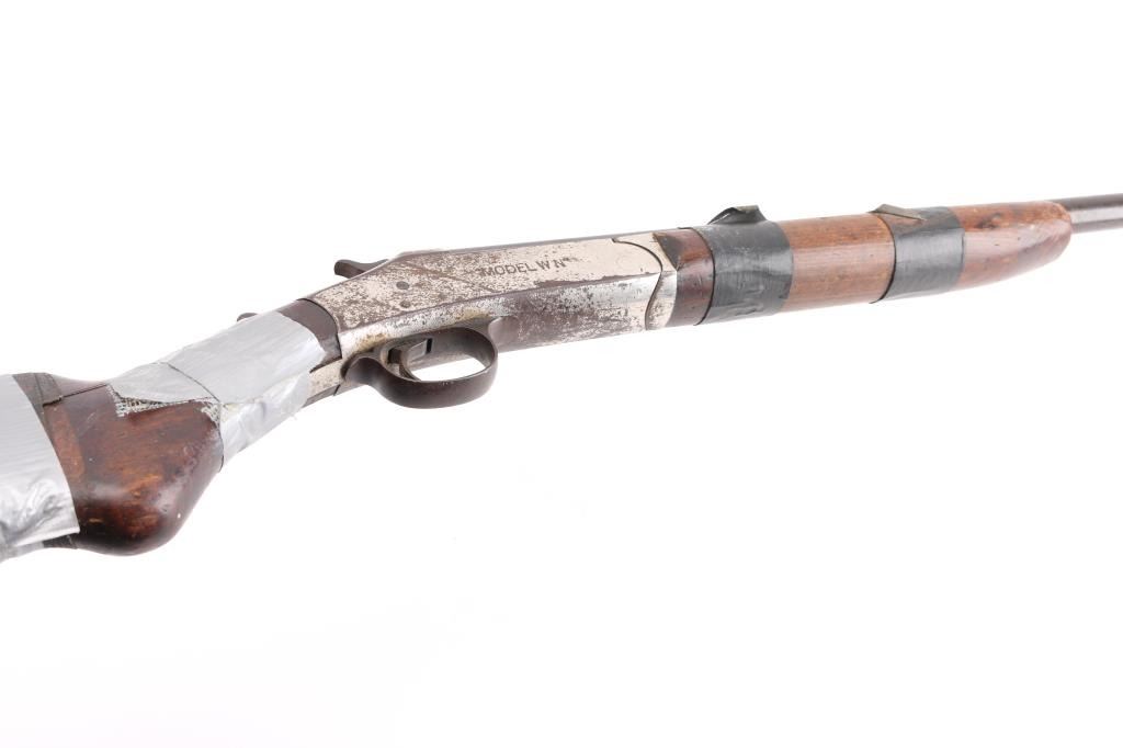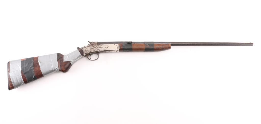 Note* Parts/Repair gun. Newport Model WN single-shot shotgun in .410 Gauge. This shotgun features a hardwood stock and forend with black buttplate, a nickel finished receiver, and 26" barrel. Gun is relic condition, cracked buttstock held together with duct tape, barrel is also taped. Bore is good. needs cleaned, action works well. Condition is Poor. C&R Firearm.