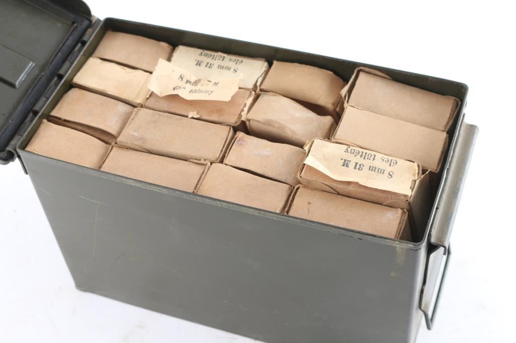 approx 320 rounds in clips, in cardboard boxes. Some rust on the blued steel clips. Some boxes marked "31 M"
