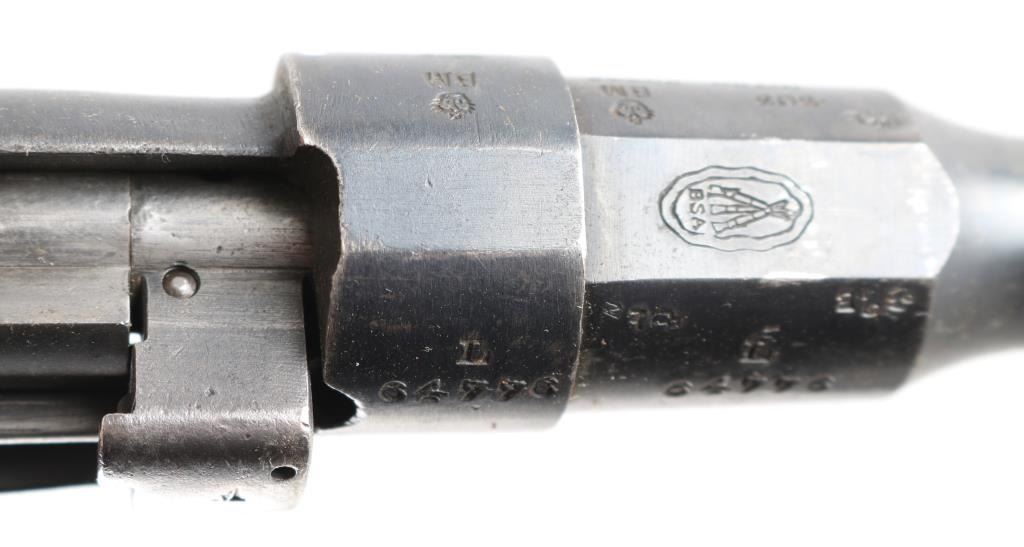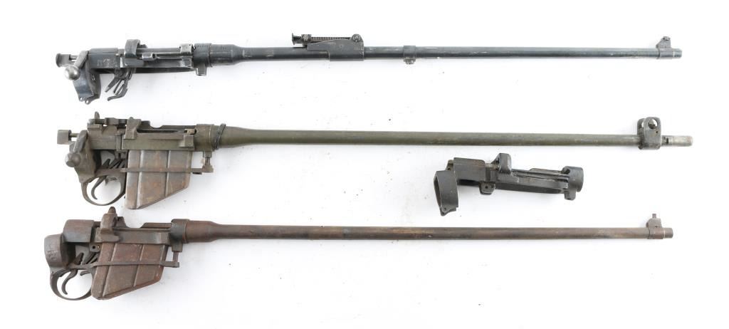 1) BSA No 1 Mk IV* SN: X81509 Receiver Only for 22 cal Cadet trainer rifle, in overall good condition, no parts, only a stripped receiver. 2) BSA No 1 Mk III* .303 SN: L64776 Barreled action, missing bottom metal & stock, includes bolt & magazine cut-off. No magazine. No stock. Good condition, 70% finish retained, good bore. 3) Enfield No 1 Mk III* .303 SN: 7138O Barreled receiver with bottom metal & magazine, trigger parts. No stock. Fair condition, lots of light surface rust and some pitting, bore is fair to good with areas of darkness and fairly shiny overall appearance. 4) Fazakerley No 4 MK I .303 SN: K27538 Barreled action, no stock, appears to be a complete action, may be missing some small part. Overall fair condition with some light rust, some pitting, patina in many places. Bore is fair to good with much brightness. *** C&R Firearms ***
