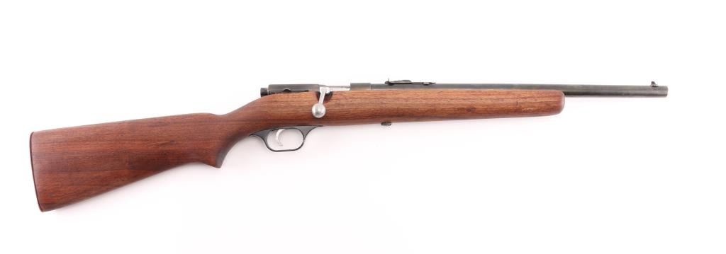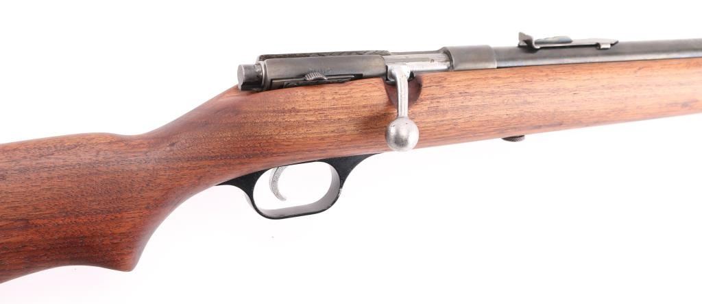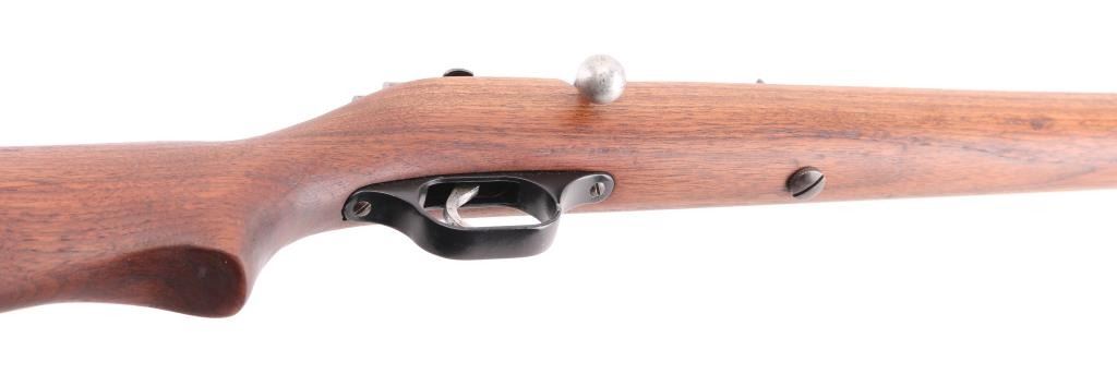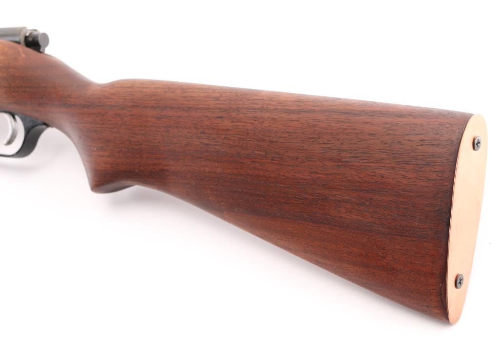 'Savage Sporter' Bolt action rifle with blued finish, wood stock with curved grip, copper buttplate, cut down 17" barrel, blade front sight, sporting rear sight, manual safety. Bore is very good condition but a little dirty. Retains 60% blue finish with minor pinprick pitting throughout. Wood is refinished, in excellent condition. Condition is NRA Good (refinished stock) C&R Firearm