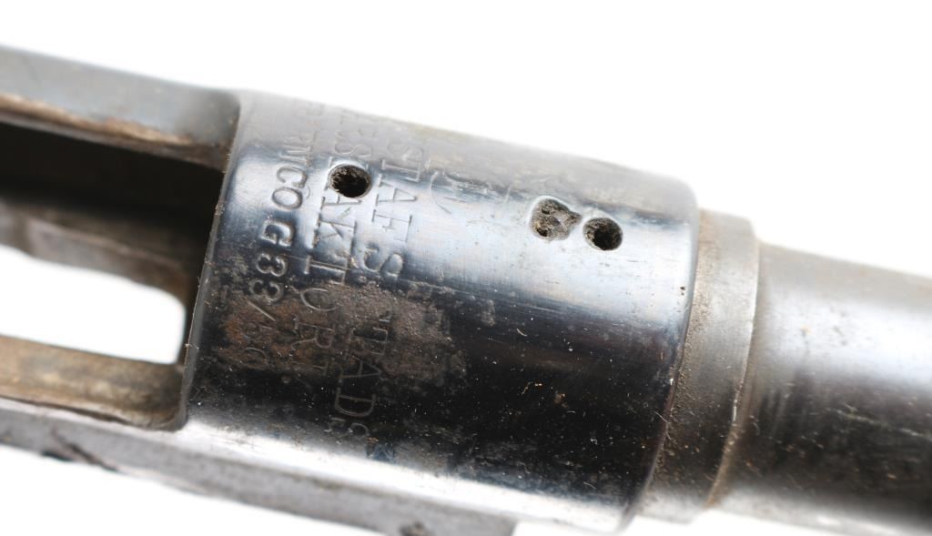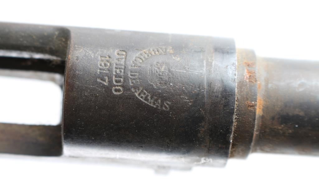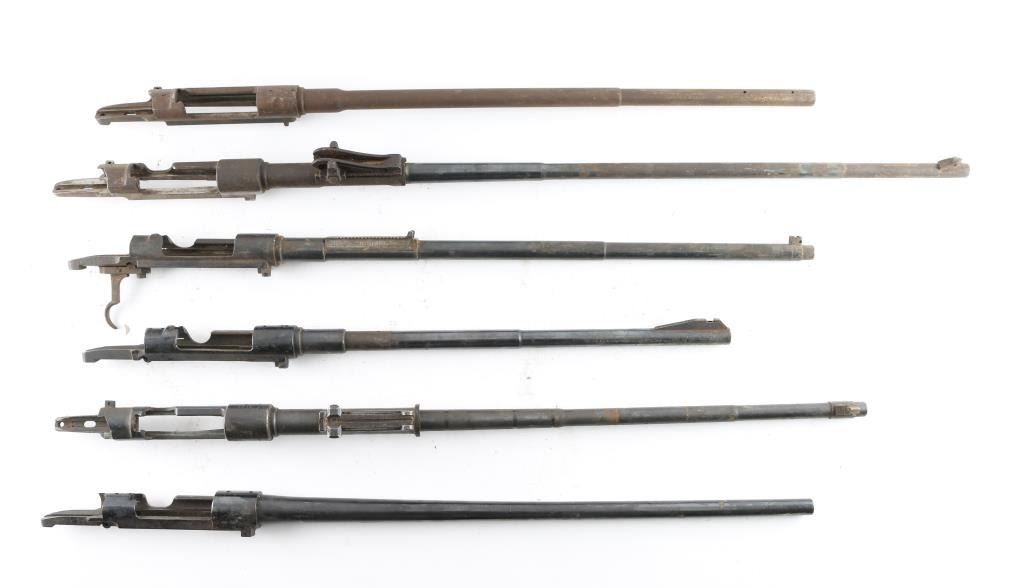 All barreled receivers with no other parts: 1) Spandau Gew 98 8mm SN: 8087 Receiver includes barrel with roller coaster rear sight. British nitro proofed. Patina and light rust throughout. Condition is NRA Fair. 2) Oviedo Model 1893 7mm SN: K4530 Receiver has been drilled & tapped. Barrel is shortened. Patina and light rust throughout. Condition is NRA Fair. 3) Carl Gustafs/Interarmco G33/50 6.5mm SN: 105194 Receiver drilled & tapped. Barrel shortened & has ramped front sight base installed. Condition is NRA Fair. 4) CZ 98 Mauser 8mm SN: 1936. Barrel appears similar to K98k, with sights, no other markings. Condition is NRA Fair. 5) Oviedo Model 1893 7mm SN: 8058 Sights removed from barrel. Receiver includes trigger parts. Condition is NRA Fair. 6) Mauser 98 30 cal SN: 597 Rebarreled and reblued, heavily polished with loss of details in markings. Condition is NRA Good as reblued. *** C&R Firearms ***