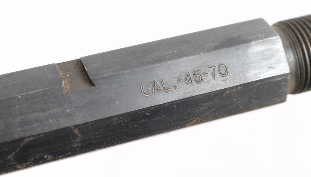 in 45-70, heavy octagon bull profiles, 26" long, very good bores. Threaded shanks. Dovetail cuts for sights.