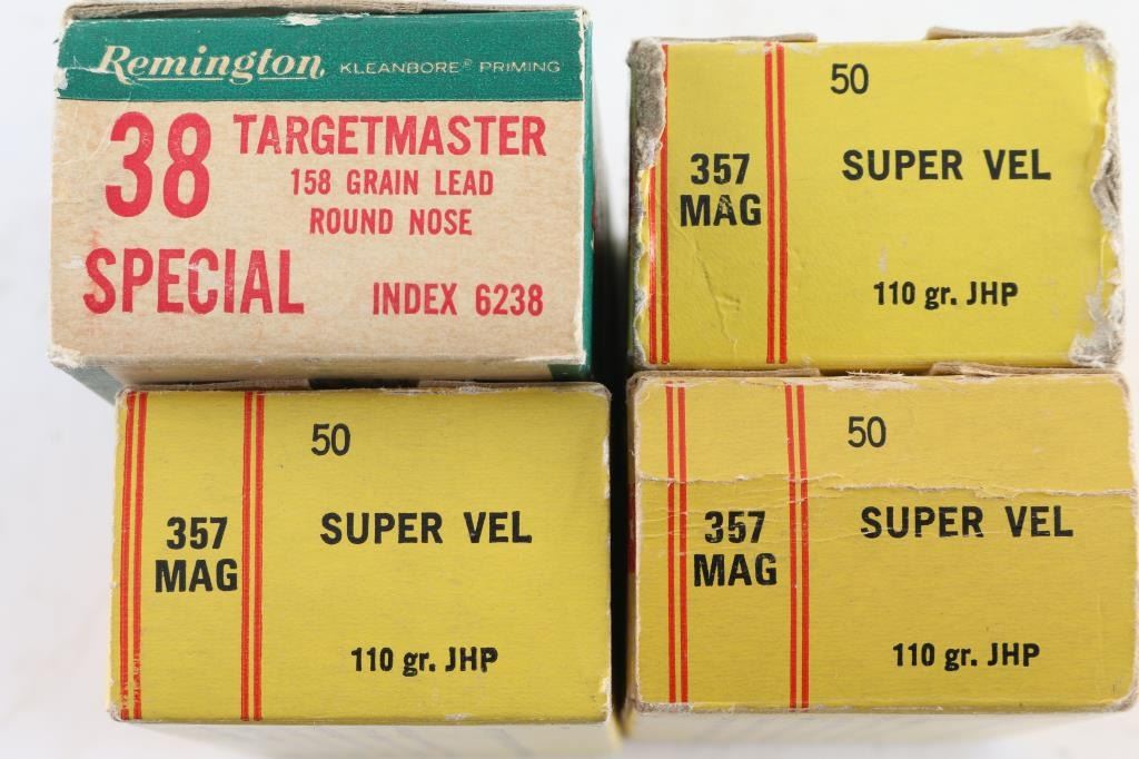 includes a box of Remington 38 Special "Targetmaster" (full - 50 rds), three boxes of Super Vel 357 Mag 110gr HP (about 140 rounds, one box partially full).