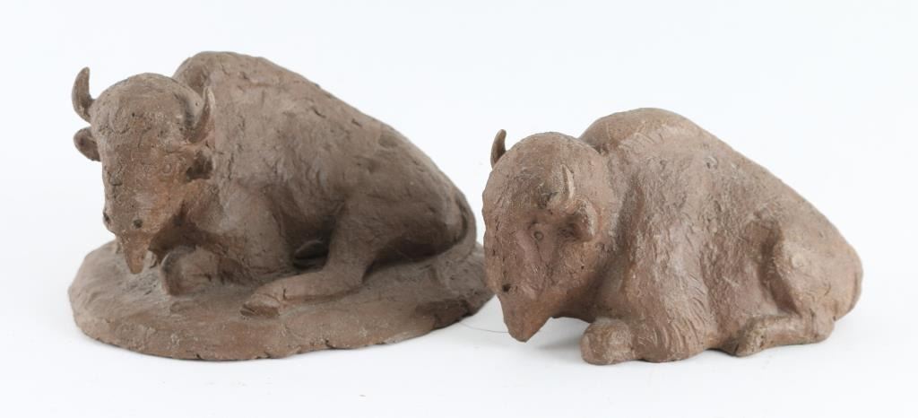 Lot 1892a Lot Of Two Clay Buffalo Scupltures