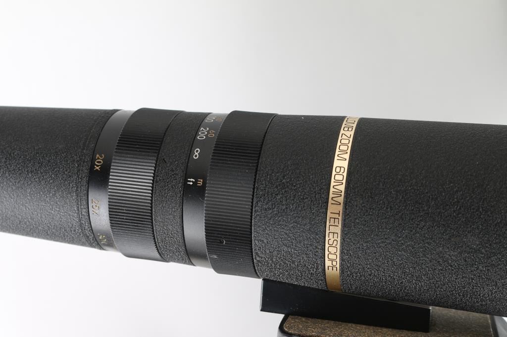 Vintage Discoverer 15-60x60 Zoom Spotting Scope with matching tripod, model 68-3000, made by Bushnell. Both in very good condition. Scope comes with black hard leather padded carrying case. Both come with factory boxes.