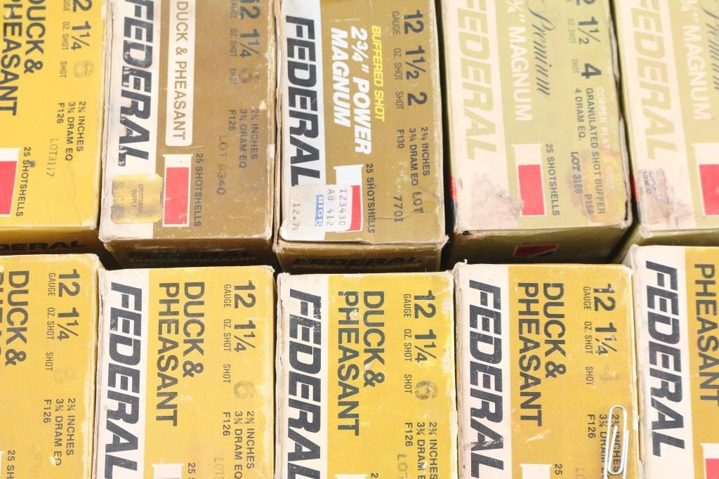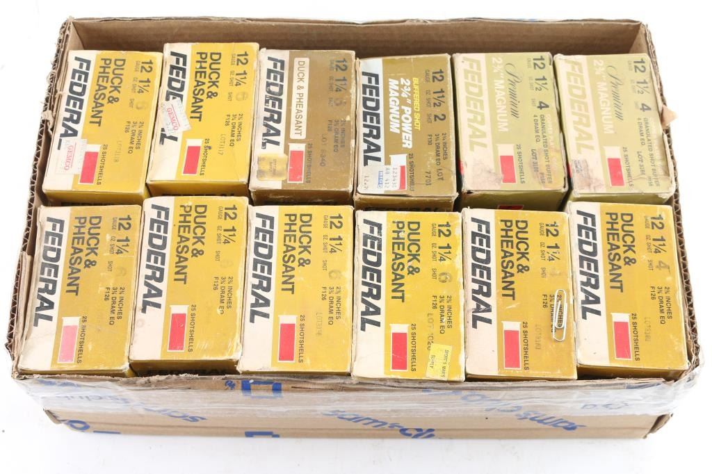 All Federal factory load: 1) approx. 225 shells of #4 & #6 shot, 1 1/4 oz. for 2 3/4" chamber. 2) approx. 75 shells of #2 & #4 shot, 1 1/2 oz. for 2 3/4" chamber.