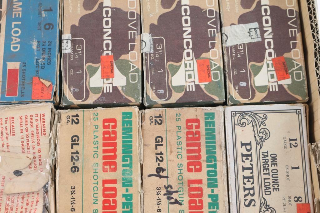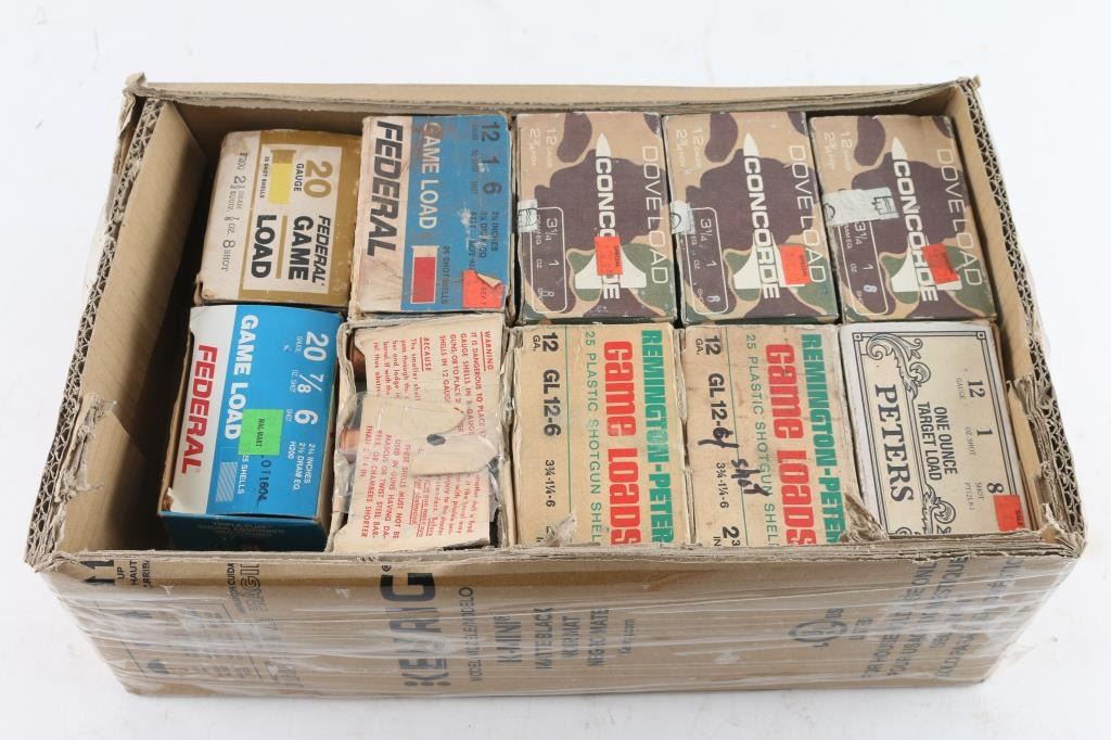 Lot of Peters, Remington/Peters, Concorde & Federal shotgun shells in factory boxes. Approx. 200 rounds of 12 Ga., 1 oz, #8 Shot, 2 3/4" chambers; approx. 38 rounds of 20 Ga., 7/8 oz. #6 shot, 2 3/4" chamber.