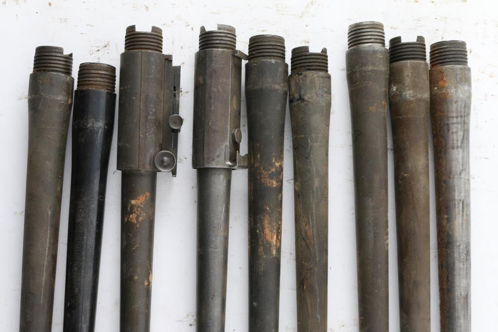 taken off US Springfield rifles. Includes two 1903 barrels with sight bases (one with rear sight), two 03A3 barrels with front sight bases. Five others cut down. Fair to Good condition.