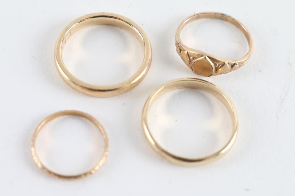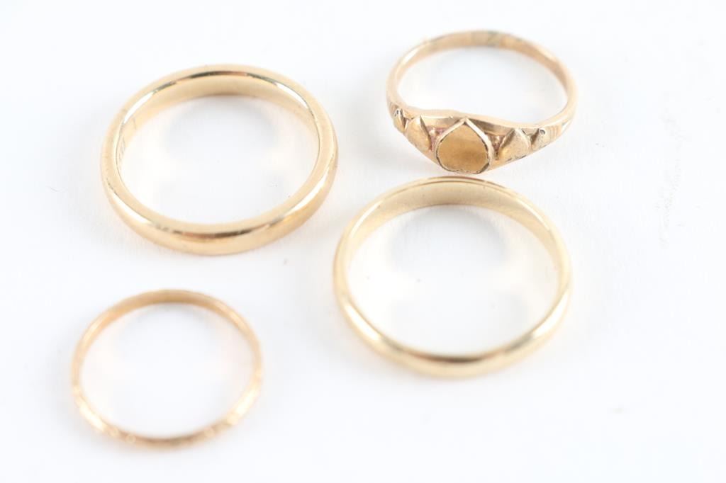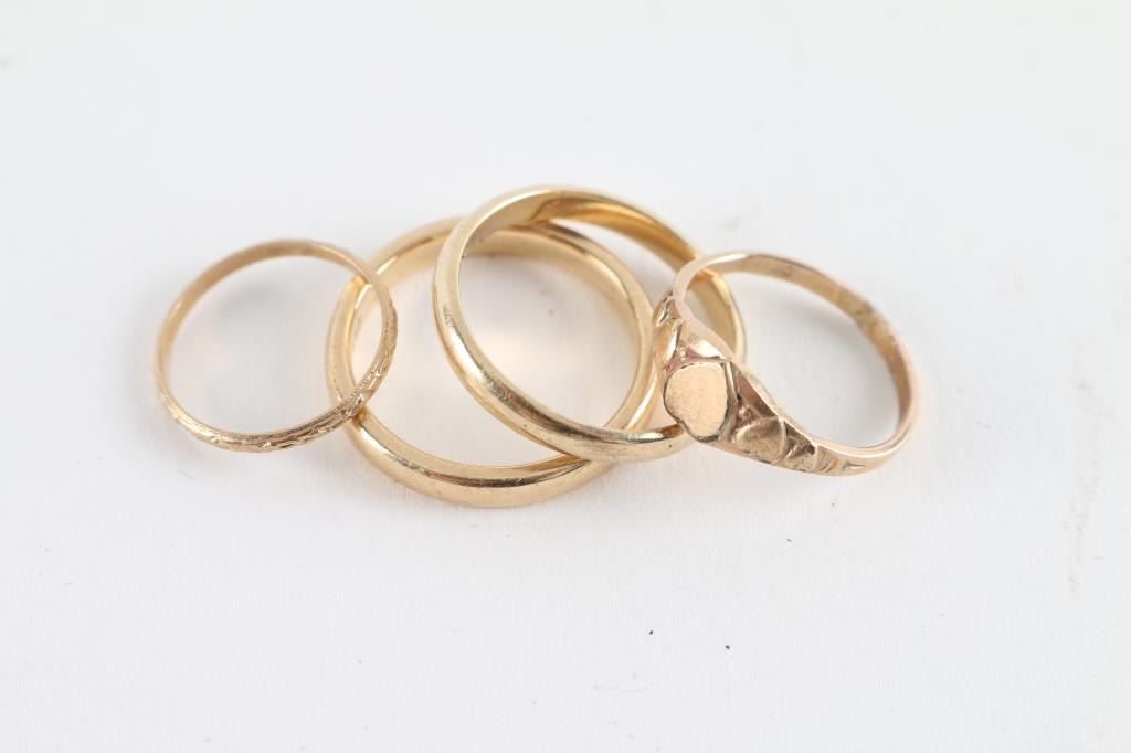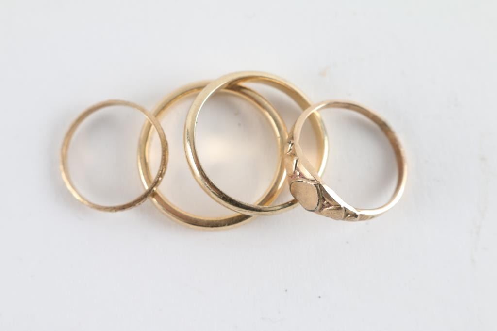 Two Plain band is a size 5, heart band is 2.5, smallest band is size 2.