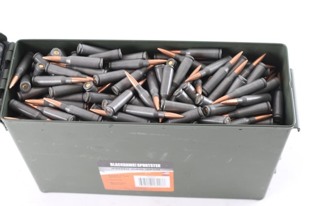 loose ammo in can, from Wolf Performance. Steel cased. Over 20 pounds in weight including the can.