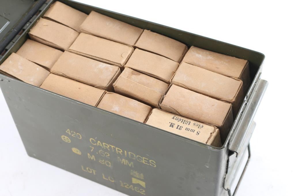 approx 320 rounds in clips, in cardboard boxes. Some rust on the blued steel clips. Some boxes marked "31 M"