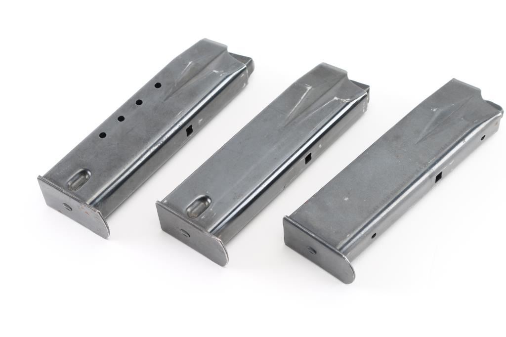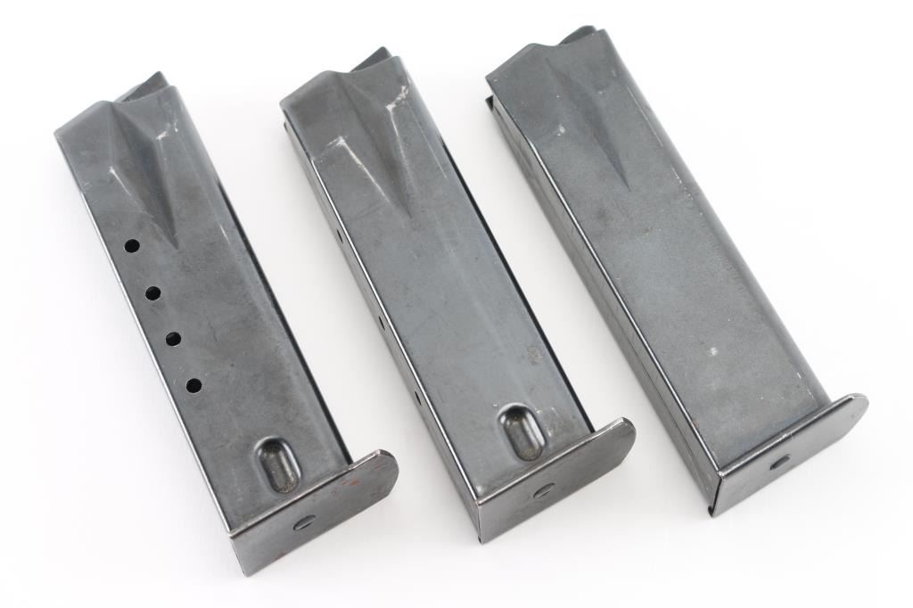 Three 15-round, 9mm magazines for P-Series Ruger pistols. Unmarked, blued, good condition.