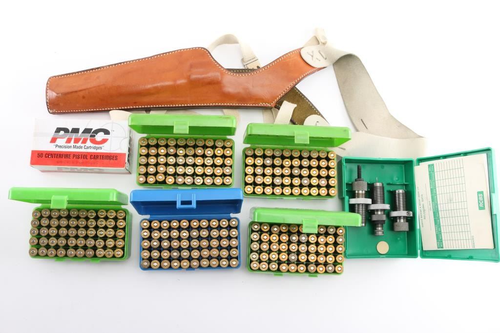 includes approx 300 rounds reloaded ammo, some additional boxes of empty brass, RCBS 41 Mag reloading die set, Sfariland shoulder holster.