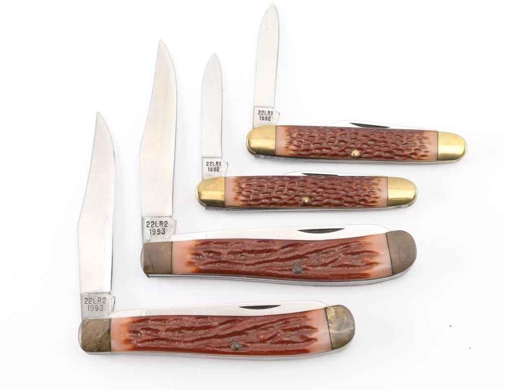 Camillus Rimfire Classic Knives. Two 22LR-1 and two 22LR-2's. All knives in original factory boxes. Condition excellent.
