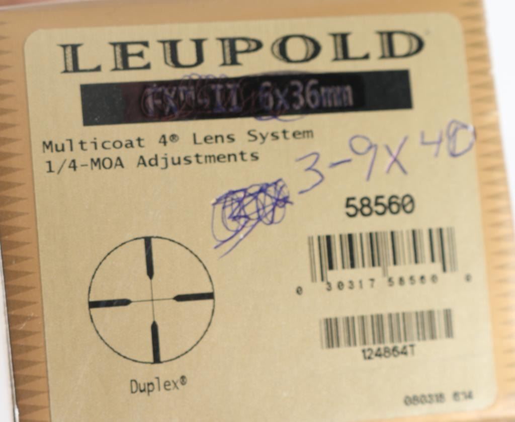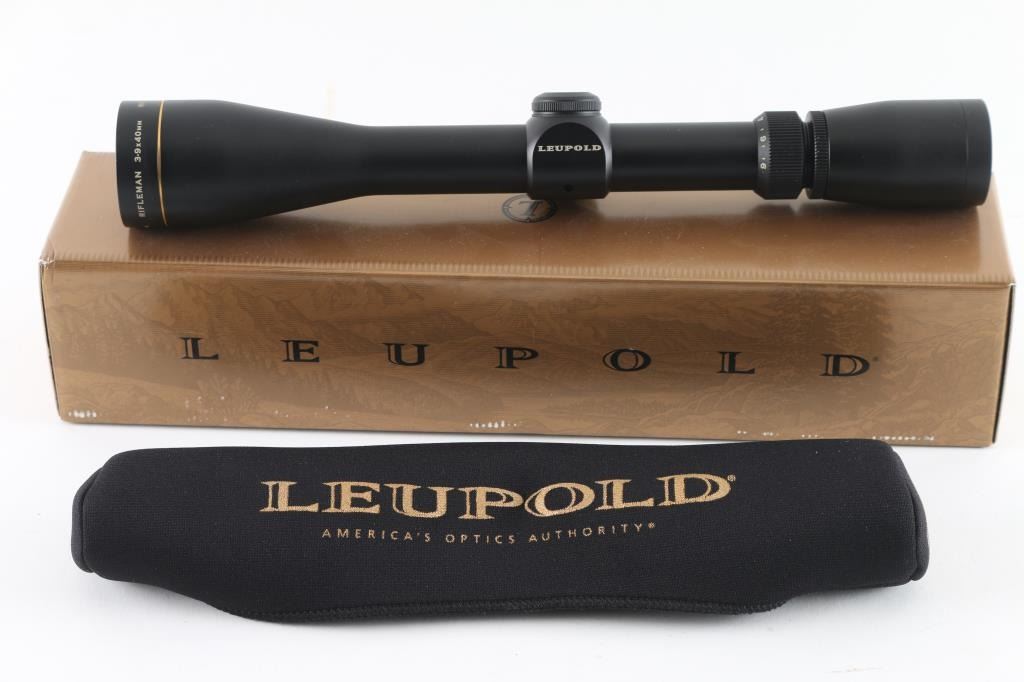 Leupold 3 - 9 X 40mm rifle scope. Matte black finish with clear lens, no wear marks. Excellent condition. Comes with neoprene scope cover, paperwork and factory box.