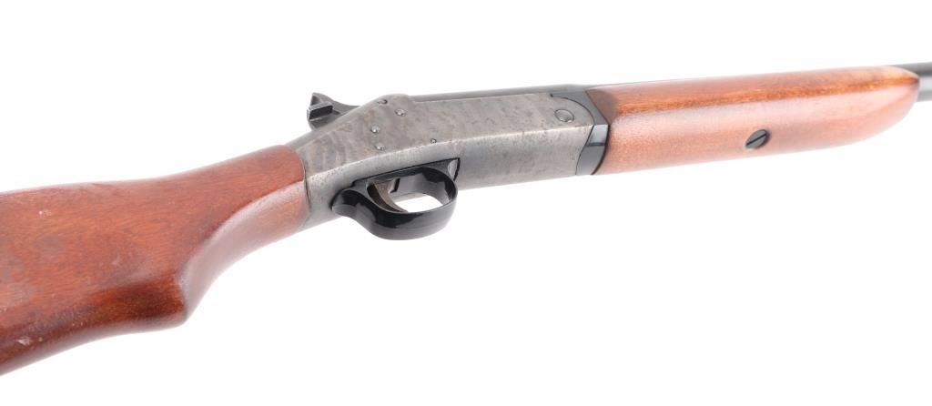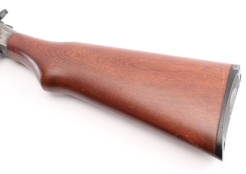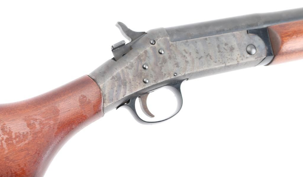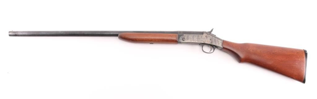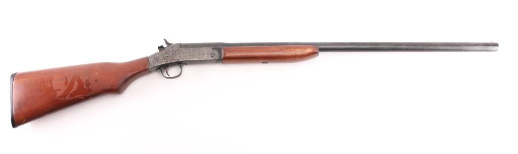 Single shot break open shotgun chambered in 12 gauge for 3" shells. Features blued barrel, case color receiver, wood stock, 28" barrel with fixed choke (gauges as Improved Modified) and brass bead front sight, black plastic triggerguard, button type top lever, plastic buttplate. Bore is excellent condition. Barrel retains 99% blue and case-hardened finish. Receiver is in excellent condition with bright case colors. Wood is in very good condition with loss of finish on right side. Bore and action are excellent. Condition is NRA Excellent. ***Modern Firearm***