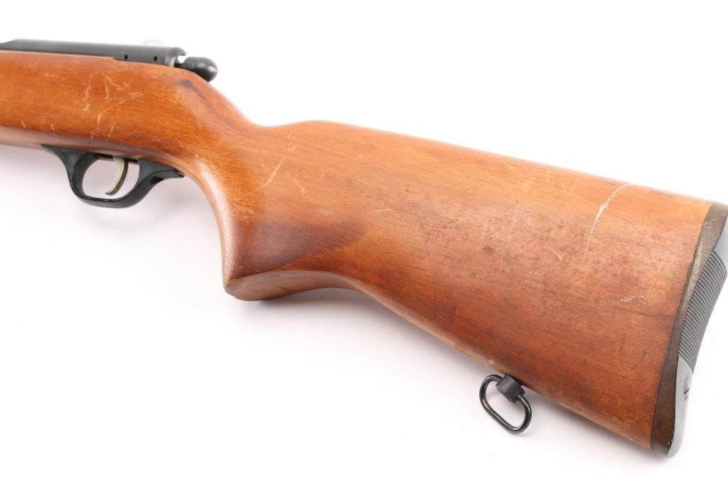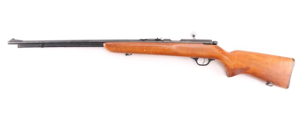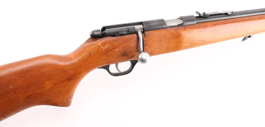 American made bolt action sporting rifle chambered for .22 Short, Long or Long Rifle, manufactured pre-1968. Features a blued finish, 24" barrel, full-length tube magazine, serrated ramped blade front sight with brass bead, smooth trigger, plastic trigger guard, manual safety and smooth pistol grip shoulder stock with sling swivels & serrated hard rubber buttplate. Rifle retains 99% of it's finish with little marring at the front end of barrel, wood has nicks, some discoloration and shallow scratches throughout. Action is smooth, bore is excellent. Condition is NRA Excellent. ***C&R Firearm***